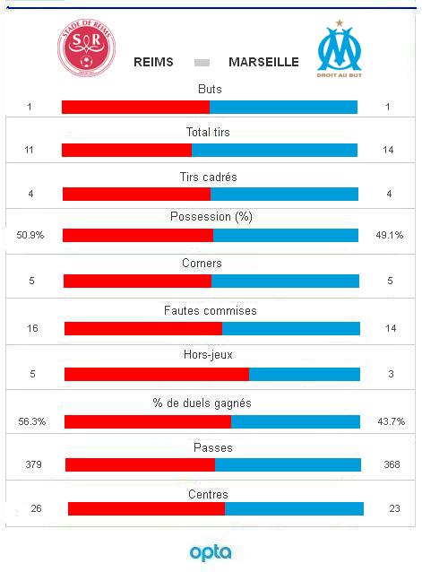 Reims- Marseille 1-1 Les joueurs du Stade de Reims entrent bien dans le match. La première mèche est d'ailleurs allumée par Grzegorz Krychowiak. Mais la frappe de l'international polonais passe juste à côté du poteau de Mandanda (6e). La réponse Marseillaise vient dix minutes plus tard. Et il faut un extraordinaire Kossi Agassa pour sortir d'une main ferme le ballon catapulté de la tête par Gignac. La suite des débats est équilibrée. Les deux formations sont bien en place, et les occasions franches se font très rares. La fin de mi-temps est davantage marseillaise. Les olympiens sont prêts d'ouvrir le score sur une frappe sèche de Cheyrou, une nouvelle fois repoussée par Kossi Agassa (43e). Nouvelle frayeur, dans la foulée, suite à un coup franc de Payet qui passe prêt du poteau rémois. Les deux équipes se quittent finalement sur un score vierge (0-0). Les hommes d'Hubert Fournier reviennent avec de bonnes intentions en seconde période et se lancent à l'assaut du but marseillais. Les corners se multiplient mais aucun ne met Mandanda à défaut. Les Marseillais tentent de leur côté de concrétiser la moindre opportunité. A l'image de Gignac - qui place une belle reprise de volée,dans les gants de Kossi Agassa (60e) - et de Fanni, tout proche d'ouvrir le score sur un corner (63e). Vient alors le temps fort rémois : Suite à un superbe mouvement des Rouge et Blanc, Antoine Devaux reprend de la tête un excellent centre de Franck Signorino. Mandanda est battu ! 1-0 pour le Stade de Reims (67e). Les 20 513 spectateurs exultent et Delaune est en folie. Les Marseillais sont sonnés pendant quelques instants, Devaux et Albaek s'essaient de loin sans succès. Malheureusement, comme souvent lors de cette saison, le Stade de Reims se fait reprendre dans le dernier quart d'heure. A la 80e minute, Fanni est trouvé côté droit, le centre du latéral est détourné au second poteau par Agassa et Gignac égalise dans le but vide (1-1, 80e). Suite à cette égalisation, les deux formations cherchent à prendre l'avantage mais la fatigue se fait ressentir. Chaude alerte quand Thauvin tente sa chance à l'entrée de la surface, mais Ayew détourne sa frappe (88e). Au terme des deux minutes de temps additionnel, les deux équipes se quittent sur un score de parité. Les Rouge et Blanc ont laissé filer l'occasion de doubler leurs adversaires du soir malgré une secondé période de bonne facture. Grâce à ce point, le Stade de Reims totalise 43 unités et figure à la 7e place du championnat. Prochain rendez-vous dès samedi prochain avec un déplacement à Bastia. |