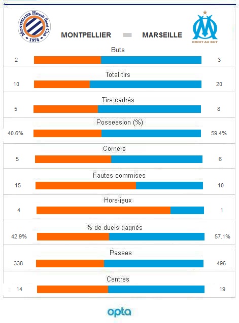 Les Olympiens s'imposent 3 buts à 2 à Montpellier. Toujours devant au tableau d'affichage, l'OM a vu Montpellier revenir au score à deux reprises. Il n'a rien lâché et l'emporte dans les dernières minutes de la rencontre. Libérés, les Olympiens le sont d'entrée. Loin du Vélodrome, ils se concentrent sur leur jeu et ça se voit. Ils se mettent d'ailleurs les premiers en évidence à La Mosson, avec Valbuena. L'OM presse haut quand il n'a pas le ballon. Montpellier s'en remet à des contres pour exister, mais ils sont souvent mal joués, notamment par le jeune péruvien Deza, titulaire en Ligue 1 pour la première fois. Valbuena, encore, Ayew, Gignac, tous tentent leur chance, sans réussite. Loin de s'énerver, les joueurs de José Anigo, conscients d'être sur la bonne voie, poursuivent leur pilonnage du camp adverse. Hilton s'énerve et s'engage un peu trop sur Morel, contraint de sortir quelques minutes plus tard, remplacé par Mendy. Ce changement ne perturbe en rien la physionomie de la rencontre. Le ballon reste olympien, le danger est sur les buts montpelliérains. Sur une nouvelle offensive, l'OM est enfin récompensé : Ayew, plein axe, sert Valbuena sur sa droite, dans la surface. La balle est un peu profonde, mais le meneur de jeu olympien se jette et frappe de la pointe du pied en demi-volée. Jourdren, avancé, est surpris, lobé. L'ouverture du score est belle, méritée. Plutôt discrets jusque-là, les supporters de l'OM se font entendre : "Aux armes !" retentit à nouveau. Ça nous avait manqué. A la mi-temps les Olympiens donnent l'impression d'avoir fait le plus dur, tant ils paraissent maîtriser la rencontre, à condition de ne pas se relâcher. Le doute ne s'éclipse pas si facilement. Il ressurgi dès le retour des vestiaires avec l'égalisation de Cabella, à la conclusion d'une action parfaitement construite sur le côté gauche du MHSC. Tout reste fragile et le moindre relâchement, la moindre maladresse est immédiatement sanctionnée. Néanmoins, l'OM n'abdique pas et reprend immédiatement sa marche en avant. Khalifa, deux fois, puis Cheyrou, voient leurs frappes contrées par des Montpelliérains solidaires et batailleurs devant leur but. Pas suffisant pour contrarier durablement les Olympiens. Ce soir, semble être un bon soir pour eux. Sur une action initiée par Valbuena et Ayew, le second sert Dja Djédjé à droite. Son centre arrive sur Gignac, seul au second poteau. L'attaquant assure du plat du pied pour tromper Jourdren et redonner l'avantage à son équipe. Il reste une demi-heure à jouer. Le match et de plus en plus âpre. Les tacles sont engagés, les duels disputés. Montpellier n'a pas renoncé. Pour une fois, l'OM ne cherche pas à gérer. Il continue de jouer, cherche à marquer. Les joueurs de Rolland Courbis, poussés sans interruption par leur public, courent une fois de plus après l'égalisation. Sur un nouveau rush côté droit, Cabella s'infiltre dans la surface et frappe au but. Mandanda repousse. Sanson, entré quelques instants plus tôt, hérite du ballon et le glisse dans le but vide. A l'image de sa saison, l'OM n'est pas gâté. Il croit pourtant encore à la victoire. Ses supporters aussi. Alors il insiste. A deux minutes du terme Payet s'empare du ballon, avance vers l'axe et décoche une frappe à l'entrée de la surface. Son tir est contré. Jourdren, à nouveau lobé. C'est la délivrance. Les Olympiens exultent et viennent saluer le buteur. PAs de quoi s'emballer, mais il faut parfois savoir savourer. Les Olympiens tiennent leur victoire. Elle est méritée. Surtout, ils ont tout donné pour aller la chercher. Auteur : Allan Chaussard |