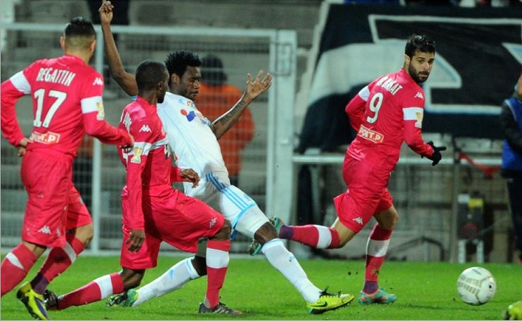 L'OM passe sans trembler L'OM se qualifie pour les quarts de finale de la Coupe de la ligue en s'imposant 2 buts à 1 face à Toulouse. Mendy et Gignac ont marqué pour l'OM. Spajic a réduit la marque, mais ce soir les Olympiens ont maîtrisé la rencontre. Rien à voir avec l'entame de match catastrophique à Gerland dimanche dernier. Ce soir, c'est l'OM le patron. En alignant son équipe en 4-4-2, José Anigo surprend son monde. Mais ça marche. Les Olympiens prennent tout de suite le contrôle de la rencontre. Le jeu est fluide, les appels tranchants, les passes précises. Khalifa est même tout proche d'ouvrir le score avant la dixième minute : Payet le lance parfaitement dans la profondeur, mais le pointu de l'attaquant tunisien passe à côté des buts de Blondel. Première grosse occasion pour l'OM. Moins de cinq minutes plus tard la domination olympienne est récompensée. Gignac dévie de la tête un bon ballon de Romao dans la course de Mendy. Le latéral gauche de l'OM contrôle parfaitement, élimine Aurier en puissance et glisse avec sang-froid le ballon au ras du poteau. Décrié face à Lyon et contre Nantes, Mendy répond à ses détracteurs sur le terrain. La supériorité olympienne continue après l'ouverture du score. Mendes, Payet et Nkoulou sont même tout proche d'inscrire le deuxième but. Mais il faut attendre la demi-heure de jeu et la mauvaise sortie de Blondel dans les pieds de Gignac pour voir l'OM alourdir la marque. L'attaquant olympien se chargeant lui-même de la sentence. Tout va bien pour les Marseillais, hormis la blessure de Lemina, remplacé par Cheyrou peu après le but. Dominateurs et réalistes, les Olympiens semblent intouchables. Mais peu avant la mi-temps, à la suite d'un coup-franc de Regattin, mal renvoyé par Lucas Mendes, Toulouse réduit la marque par Spajic. L'OM est prévenu, il doit continuer à faire les efforts pour se qualifier. Pas de relâchement donc en seconde période. L'OM reprend tout de suite le contrôle des opérations. Les occasions sont, dans un premier temps, plus rares. Puis, après une quinzaine de minutes, les Olympiens redeviennent tranchants, vifs et précis. Khalifa s'écroule dans la surface et réclame un penalty, l'arbitre ne dit rien. Gignac frappe au-dessus à la suite d'un bon centre de Payet. Lequel, quasiment dans la foulée, peste lui-aussi après M. Jaffredo à la suite d'une faute, évidente, d'Akpa-Akpro dans la surface, là aussi non sifflée par l'homme en jaune. Le tout est heureusement sans conséquence pour l'OM, les Toulousains étant trop peu dangereux pour l'inquiéter. Les hommes de José Anigo gèrent tranquillement la rencontre. L'entraîneur marseillais effectue ses changements un à un et la physionomie du match reste la même : le milieu en losange tourne parfaitement et la défense gère les maigres tentatives toulousaines. Il manque juste un ou deux buts pour parfaire la prestation olympienne. Toulouse tente bien un dernier baroud d'honneur en toute fin de rencontre, mais c'est trop peu pour inquiéter l'OM. Après avoir beaucoup souffert à Lyon, il se rassure en coupe. Il prépare au mieux son dernier match de l'année en Ligue 1, dimanche face à Bordeaux, en se qualifiant pour les quarts de finale de la Coupe de la ligue, sans trembler. Auteur : Allan Chaussard |