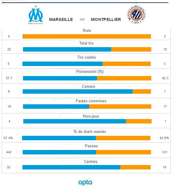 Peu inspiré, l'OM chute face à Montpellier