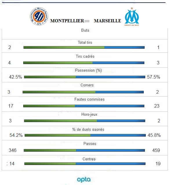 L'OM s'est incliné 2 buts à 1 à Montpellier en ouverture de la 20e journée de Ligue 1 2014-15 et débute très mal l'année. Bérigaud et Lasne ont marqué pour le MHSC. Omrani a réduit la marque. Rythmé par l'hommage du monde du football aux victimes des actes meurtriers survenus en France au cours des 48 dernières heures, l'avant-match est aussi marqué par les choix des coaches. On s'attendait à un coup tactique de la part de Rolland Courbis. Il n'a pas déçu en alignant deux attaquants de pointe, poussant Marcelo Bielsa à jouer avec trois défenseurs centraux dans un système en 3-1-3-3 souvent décrié. Le coach argentin, privé de Nkoulou et Ayew partis à la CAN et d'Alessandrini et Barrada toujours blessés, n'est pas pour autant resté sans réponse en positionnant pour la première fois Batshuayi sur l'aile droite. D'emblée, les deux équipes ont mis du rythme et de l'engagement dans le jeu. L'une et l'autre ont pris le parti d'exercer un pressing constant sur leur adversaire aux dépens de l'utilisation propre de la balle. Néanmoins, dans le jeu, les Olympiens restaient fidèles à eux-mêmes en maîtrisant majoritairement le ballon, mais étaient gênés par le bloc montpelliérain dans la construction. Seules quelques chevauchées de Djadjédjé et les coups de pied arrêtés permettaient d'apporter une once de danger sur le but de Ligali. Les locaux se montraient plus tranchants et ouvraient la marque par Bérigaud d'une très belle frappe du pied droit à l'entrée de la surface sur laquelle Mandanda ne pouvait rien. Cependant, Djadjédjé, victime d'un écrasement de la main couplé à un coup de genou au visage, était au sol dès le début de l'action et personne n'interrompait le jeu. A la mi-temps, l'OM était mené au score et devait de réagir en seconde période pour ne pas totalement gâché son début d'année 2015. Dès la reprise du match, Gignac avait l'occasion d'égaliser, à la suite d'une passe en retrait mal assurée de Morgan Sanson à direction de son portier, mais la frappe de l'attaquant s'envolait au-dessus des buts de Ligali. Toujours devant à la possession du ballon, les Olympiens tentaient de revenir dans la rencontre, mais n'arrivaient pas réellement à inquiéter le MHSC. Les joueurs de Rolland Courbis étaient bien plus mordants, se battant sans relâche sur chaque ballon et remportant la grande majorité des duels, dans toutes les zones du terrain. Désorganisé, peu inspiré et pas assez agressif, l'OM se faisait une nouvelle fois punir peu après l'heure de jeu, à la suite d'une perte de balle de Fanni à l'entrée de la surface. Ensuite, Mounier effaçait le reste de la défense pour servir Lasne idéalement placé pour marquer. Les Olympiens n'abdiquaient pas et réduisaient la marque peu après par Omrani, entré en jeu à la place de Batshuayi et buteur pour la première fois en Ligue 1, à la réception d'un excellent centre au second poteau du très généreux Brice Djadjédjé. A 2-1, la situation se figeait, l'OM étant toujours aussi peu performant collectivement. Marcelo Bielsa tentaient alors le tout pour le tout en remplaçant Romao par le très jeune Boutobba. Il était trop tard, Montpellier tenait sa victoire. Une semaine après son élimination de la coupe de France face à Grenoble, les Olympiens s'inclinaient sur la pelouse héraultaise et démarraient l'année 2015 de la pire des manières.