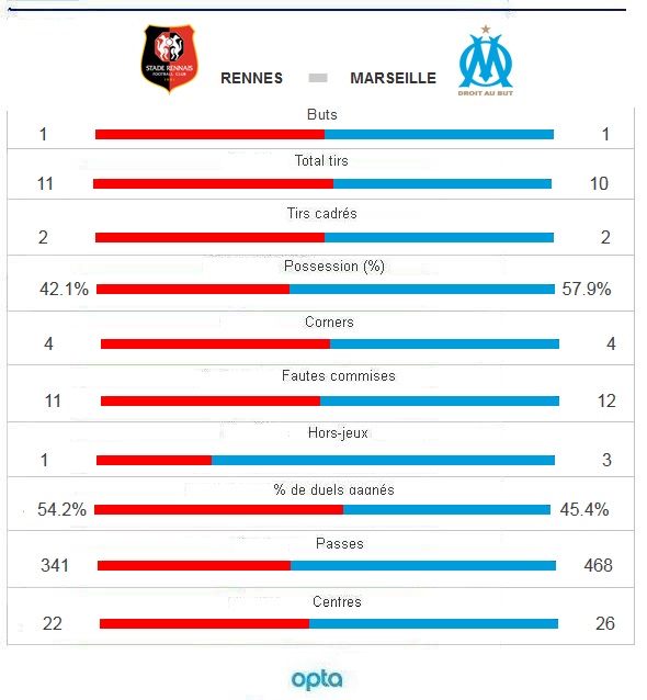 L'OM avait une occasion en or de s'emparer provisoirement de la tête de la Ligue 1, ce samedi après-midi, à Rennes. Il n'en fut rien car les Olympiens n'ont ramené qu'un seul point de leur déplacement. Une mauvaise opération quand on sait que Lyon et le PSG, les deux concurrents directs, s'affrontent ce dimanche. Cependant, l'OM ne s'est jamais vraiment montré en mesure d'empocher les trois points. La première période des Olympiens est totalement ratée. Les hommes de Marcelo Bielsa sont dominés par des Rennais emmenés par un Pedro Henrique, au four et au moulin. C'est d'ailleurs le Brésilien qui se procure les deux premières occasions bretonnes : son tir n'est pas cadré (8') tandis que son coup franc (14') est repoussé par Mandanda. De son côté, l'équipe olympienne ne montre absolument rien et se fera logiquement sanctionner. Sur un long ballon, Pajot remet le ballon de la tête à Toivonen. Le Suèdois, incroyablement seul dans la surface, a tout le loisir d'expédier une volée gagnante (27'). Menés au score, les joueurs de Marcelo Bielsa sont proches de concéder un penalty mais ni la main de Morel (38') ni celle d'Imbula (41') ne font réagir l'arbitre. Face au triste spectacle proposé par ses troupes, le coach argentin décide de lancer à la pause Ocampos, le néo-Olympien, en lieu et place d'un Alessandrini, totalement transparent. Le choix est gagnant puisque le transfuge de Monaco égalise en reprenant au premier poteau un corner de Payet (60'). Cette égalisation a le mérite de rebooster les Olympiens qui sont proches de prendre l'avantage mais Gignac ne parvient pas à reprendre le centre de Thauvin (63'). On retrouve ensuite les deux protagonistes quelques instants plus tard : Thauvin élimine superbement deux défenseurs et...se fait chiper le ballon par Gignac. Ce dernier gâche ensuite cette contre-attaque en repiquant dans l'axe (78'). Alors que l'OM retrouve des couleurs, les joueurs de Marcelo Bielsa vont se retrouver à dix après une réaction qui n'a pas lieu d'être de la part de Lemina. Après un duel, l'Olympien assène un coup de poing dans le ventre de Toivonen et se fait logiquement expulser (83'). La fin de match ressemble à une attaque-défense mais le score ne bougera pas. L'OM lâche encore des points à l'extérieur et poursuit sa série calamiteuse dans ce domaine. Les Olympiens n'ont plus gagné hors de leurs bases depuis le 4 octobre. Auteur : Amayes Brahmi |
