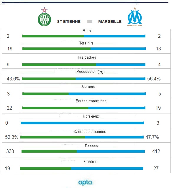 Coaching presque gagnant Les Olympiens ramènent un point de Saint-Etienne alors qu'ils menaient à l'entrée du temps additionnel. Dommage... En jouant en dernier lors de cette 26ème journée de Ligue 1, les Olympiens étaient au courant bien évidemment des résultats de leurs concurrents. La veille, le PSG s'était imposé et s'était emparé du fauteuil de leader. Dimanche, quelques heures avant le coup d'envoi à Geoffroy-Guichard, Lyon avait gagné face à Nantes et repris la première place avec cinq points d'avance sur l'OM. La pression était donc du côté des Olympiens dans le Forez. La victoire était impérative pour rester au contact. Florian Thauvin laissé sur le banc par Marcelo Bielsa, c'est Lucas Ocampos qui honorait sa première titularisation sous le maillot marseillais. L'entame était en faveur de l'OM car comme à leur habitude, les Olympiens avaient la possession de la balle. Mais c'est bel et bien les locaux qui se procuraient les premières occasions. Van Wolfswinkel et Gradel notamment alertaient Mandanda à plusieurs reprises. Face à un bloc bas, les Marseillais profitaient des mauvaises relances stéphanoises pour se projeter vers les buts de Ruffier. Cependant, l'OM manquait de mouvement, de percussion et surtout ne centrait pas assez pour s'approcher de la surface adverse. Les Verts, eux, profitaient des erreurs de marquage olympiennes pour s'infiltrer dans la défense et solliciter le capitaine marseillais. Finalement, les deux meilleures occasions des équipiers de Mandanda sont venues sur des tirs lointains : le premier de Payet, juste au-dessus, le second d'Imbula, repoussé d'une manchette par Ruffier. Dans cette première période, la bataille du milieu était gagnée par les Stéphanois et tout le problème venait de là. Sans réelles solutions, les Olympiens perdaient rapidement la balle. Cette donnée était accentuée en début de seconde période. Dans les premières minutes, l'OM était acculé, incapable de ressortir proprement. Cette vague verte se concrétisait par un penalty concédé par Morel après un petit pont d'Hamouma. Gradel transformait sans trembler. Mené 1-0, Marcelo Bielsa n'avait plus rien à perdre et sentait bien qu'il devait provoquer quelque chose dans sa formation. L'entraîneur argentin décidait de faire trois changements d'un coup : Batshuayi, Alessandrini et Aloé remplaçaient Gignac, Romao et Djadjédjé. Des remplacements payants puisque sur son premier ballon, l'attaquant belge, juste après un premier tir contré, égalisait avec un énorme sang-froid (64e). Dans la foulée, Alessandrini centrait et Batshuayi signait un doublé (67e). Le match qui s'était emballé, reprenait un rythme plus traditionnel. Hamouma ratait la balle du 2-2. Batshuayi, très en vue, perdait son duel avec Ruffier et Payet manquait le cadre pour le break. Mais les Olympiens, avec un Ayew en position plus reculé, arrivaient beaucoup mieux à se trouver et à combiner. Alessandrini, Ocampos, Payet ou encore et toujours Batshuayi mettaient le feu dans une défense verte qui ne savait plus où donner de la tête. Les Marseillais gagnaient enfin les duels. Et la confiance retrouvée, ils ont complétement retourné la physionomie d'un match qui trente minutes plus tôt semblait perdu. Dans les toutes dernières minutes, les hommes de Christophe Galtier jetaient toutes les forces dans la bataille pour égaliser. Et ils y parvenaient, au tout début du temps additionnel, sur une partie de billard dans la surface de réparation marseillaise conclue par une tête d'Erding. Les dernières secondes étaient haletantes. Chacune des deux équipes a eu l'opportunité de marquer le troisième but, celui qui aurait permis à l'OM de mettre fin à sa série de matches sans victoire à l'extérieur qui dure depuis trop longtemps. Au lieu de cela, l'OM, désormais troisième, perd deux points dans sa lutte avec Lyon et Paris. Auteur : Frédéric Rostain |