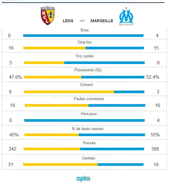 Nouveau festival de buts pour l'OM Qu'il semble loin le temps où l'OM connaissait une longue période de disette à l'extérieur. Lors de ses deux derniers déplacements, l'équipe de Marcelo Bielsa vient d'empocher six points tout en inscrivant dix buts. Après avoir étrillé Toulouse (6-1), l'OM n'a fait qu'une bouchée, ce dimanche soir, du RC Lens au Stade de France. Les Olympiens montrent très rapidement leurs ambitions. Gignac, par deux fois, est proche d'ouvrir le score très rapidement mais ni son tir dévié (1') ni sa belle reprise du plat du pied (3') ne finissent au fond des filets. Emmenés par un Payet très en jambes, l'OM domine les débats en début de rencontre mais ne concrétise pas ses opportunités. De quoi revigorer le RC Lens qui se signale par l'intermédiaire de Touzghar. Ce dernier déclenche une tête non cadrée (28') avant d'expédier une reprise de volée détournée par Mandanda (38'). Malgré ces deux avertissements lancés par les Nordistes, ce sont bien les Olympiens qui se procurent l'ultime occasion de la première période. Payet délivre un amour de ballon en direction de Dja DjéDjé qui se retrouve en position de buteur et se fait reprendre in extremis (41'). A la pause, Marcelo Bielsa tente un coup de poker en faisant entrer Batshuayi à la place de Gignac, guère en réussite. Un choix payant puisque le Belge débloque le score, quelques secondes après son entrée en jeu, en convertissant une offrande Payet (46'). Malgré la réaction lensoise par l'intermédiaire de Le Moigne (48'), c'est l'OM qui va faire trembler les filets de nouveau. Payet, encore lui, botte un coup franc qui atterrit sur le poteau et Romao, opportuniste, a bien suivi pour permettre à l'OM de faire le break (67'). Groggy, le RC Lens va craquer une nouvelle fois après une belle séquence olympienne. Batshuayi décale Mendy sur le côté gauche de la surface. Ce dernier garde sa lucidité pour trouver Ayew qui donne un avantage conséquent aux siens (71'). L'OM file la victoire et se permet même le luxe d'inscrire un quatrième but grâce à Batshuayi qui s'offre un doublé (90+2). Les Olympiens signent un large succès et reviennent à deux points du PSG, leader du championnat. Un scénario idéal lorsqu'on sait que l'OM reçevra le club parisien lors de la prochaine journée. Auteur : Amayes Brahmi |
