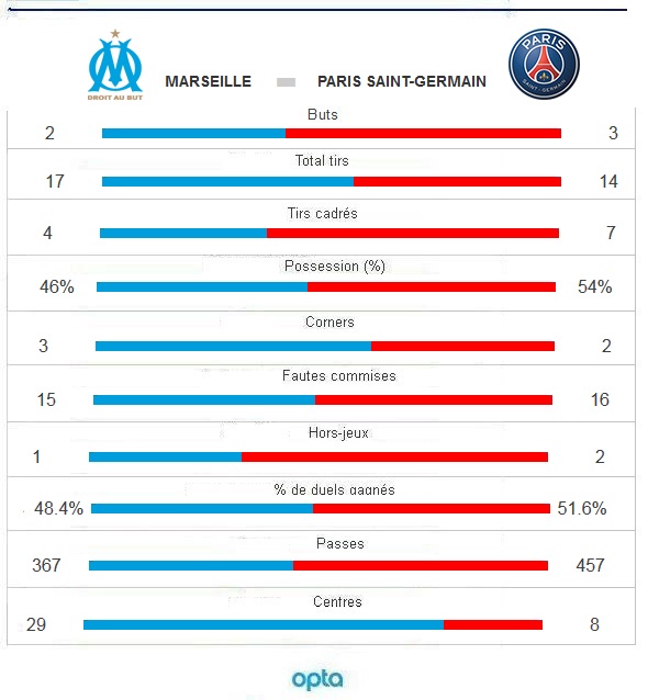 Les joueurs y auront cru, les plus de 65 000 spectateurs présents au Vélodrome aussi. Dans une ambiance absolument folle dans l'antre marseillais, l'OM s'est incliné face au PSG (2-3) dans un magnifique Clasico que les Olympiens auraient pu remporter. Grâce à deux buts du buteur maison André-Pierre Gignac, l'OM menait (2-1) à la pause et laissait présager le meilleur à ses supporters. Mais la donne a très rapidement changée et le PSG a très rapidement repris les commandes du match en début de seconde période. Avant de ne plus jamais les lâcher. Après un tifo exceptionnel étendu dans les travées d'un Vélodrome plein à craquer, le rythme de la partie est rapidement donné. Pressing, tacles et autres gestes techniques, la première mi-temps du match est de haute volée, digne d'un match de Ligue des Champions. Les coéquipiers de Steve Mandanda ont tout de même du mal à développer leur jeu d'entrée, trop préoccupé à bien défendre individuellement sur les joueurs parisiens. Puis, tout va très vite. A la demi-heure de jeu, Gignac amorce un long une-deux avec Payet qui lui adresse un centre parfait. APG s'impose physiquement devant Marquinhos et catapulte, de la tête, le ballon dans le but de Salvatore Sirigu (1-0). Le match est complètement lancé et le PSG ne va pas mettre longtemps à revenir au score. Seulement cinq minutes après l'ouverture du score, Blaise Matuidi va éteindre le Vélodrome. L'international français, très bon ce soir, efface Dja Djédjé d'une feinte de frappe avant d'enrouler une merveille de frappe, du pied droit, dans la lucarne opposée d'un Mandanda qui ne peut qu'effleurer le ballon (1-1). Un but qui aurait pu mettre un coup au moral des joueurs marseillais mais c'était sans compter sur la grinta olympienne. Romao récupère haut un ballon dans les pieds de Pastore et lance une nouvelle fois Gignac (42'). Le Fosséen fixe Sirigu avant de le battre tranquillement du pied droit et d'aller laisser exploser sa joie devant ses supporters (2-1). Des regrets, beaucoup de regrets Au retour des vestiaires, les Parisiens sont les premiers à revenir sur la pelouse, preuve de leur détermination. Et en quelques secondes, l'OM va laisser échapper ce match qu'il avait en main. C'est d'abord (49') le Brésilien Marquinhos qui va égaliser sur un coup-franc tiré par Ibrahimovic et dévié par Fanni (2-2). Et comme si cela ne suffisait pas, à peine trois minutes après l'égalisation, le PSG va prendre les devants. Centre de Pastore venu de la gauche et c'est le pauvre Jérémy Morel, pressé par l'attaquant suédois, qui vient couper la trajectoire du ballon dans son propre but (2-3). L'arbitre de la rencontre, Ruddy Buquet, aurait ensuite pu accorder un pénalty aux Olympiens après une main de Marquinhos dans la surface. Un regret de plus... Si l'OM n'a pas su tenir un score pourtant à son avantage, le PSG le fait lui parfaitement. Les entrées d'Ocampos, Alessandrini et Batshuayi, venus dynamiter l'attaque olympienne, n'y feront rien. La bande à Bielsa s'incline et laisse s'échapper le PSG au classement, deuxième avec cinq points d'avance. Mathématiquement, l'OM peut encore jouer le titre. Pour cela, il faudra remporter les sept finales qu'il lui reste à disputer. Auteur : Kevin Duran |