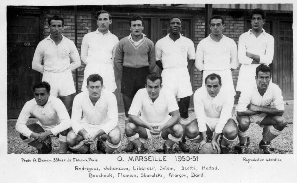 Dans son style, aisé, Johansson réalisa une excellente exhibition face au remuant Bruey, sa maîtrise, son calme en imposèrent. Il fut, au début, quelquefois passé par Burey. En fin de match, touché à la jambe, il permuta avec Haddad. Tout en prenant en charge Gudmundsson, il s'appliqua à l'attaque, il a fait une forte impression à Paris Haddad a fait lui aussi un bon match tout comme demi que comme arrière central. Alarcon, excellent technicien Alarcon que vous voyions pour la première fois, nous est apparu comme un brillant footballeur... en puissance. Peu mobile, manquant de détente encore, car il n'est pas en condition, il utilisa très bien la balle chaque fois qu'il s'en empara, mais parait avoir un faible pour les petites passes courtes avec son demi ou l'autre inter. Dard fut ainsi sevré de balle en première mi-temps. Plus souvent mis à contribution après le repos à l'aile droite ou il permuta avec Bouchouk. Le bouillant ailier ne fut cependant pas toujours heureux dans ses entreprises. Sboralsky, Bouchouk Sboralski courut sur toutes les balles, courut beaucoup de terrain sans résultat positif, bien qu'il fut à l'origine de l'action qui amena le penalty et valut à l'O.M. l'égalisation, en enlevant la balle à Vignal. Bouchouk joua au football, il prit le pas sur Salva en première mi-temps, sur Arens ensuite, grâce à son excellente technique et à sa mobilité. Quel dommage qu'il ne soit pas plus effectif ! La défense Comme toujours, la défense marseillaise fit dans son ensemble un très bon match. Libérati n'a rien à se reprocher. Salem débuta timidement, car il paraissait appréhender Gudmundsson. Il se bonifia à mesure que les minutes s'écoulaient pour finir très fort, après avoir écoeuré l'Islandais. Rodriguez, enfin retrouve peu à peu la cadence et prit le plus souvent le dessus sur Moreel. VICTOR AZAIS |