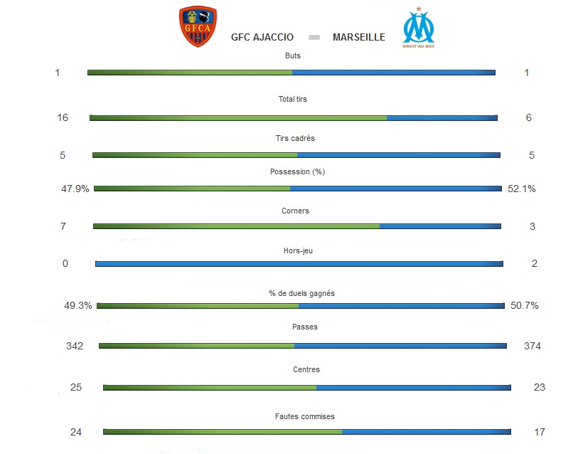 En match en retard de la 28ème journée de Ligue 1, les Olympiens ont ouvert le score à dix minutes du terme mais les Corses ont égalisé cinq minutes plus tard. Difficile de faire la différence sur une pelouse en si mauvaise état. Pourtant refait en partie, il y a quelques semaines, le gazon corse était dans un état à la limite du praticable ce mercredi en fin d'après-midi. On n'ose imaginer son état il y a dix jours, à la date initialement fixée pour le match alors que des trombes d'eau s'étaient abattues sur Ajaccio... L'état du rectangle vert n'est pas une excuse mais une explication de la prestation fournie par les deux équipes au stade Ange Casanova. Elles ont eu les plus grandes difficultés à développer du jeu. Au sol, la progression du ballon était compliquée. Dans les airs également car les rebonds étaient aléatoires et les appuis incertains ne permettaient pas de jouer en première intention. Malgré tout, dans un système en 4-4-2 avec Batshuayi et Fletcher en pointe, les Olympiens se sont procuré les occasions les plus franches en première période. Nkoudou, le Marseillais le plus en vue, a eu trois occasions franches mais a buté à chaque fois sur Maury. Tout comme Batshuayi dont la seule opportunité des 45 premières minutes a fini sa course dans les gants du portier corse. Les Ajacciens n'ont pas fait que défendre et auraient pu ouvrir la marque sans un Mandanda, une nouvelle fois, impressionnant. Si Filippi ou Le Moigne ont tiré à côté, Larbi, Zoua, Boutaib, sur son premier ballon, ou Ducourtioux ont alerté le capitaine olympien, auteur de parades décisives. Michel lançait du sang frais avec Sarr puis Thauvin alors que les Ajacciens monopolisaient la balle. Et sur un contre rondement mené, Batshuayi, qui aspirait trois défenseurs, décalait Cabella. Plein de lucidité, l'Olympien effaçait Maury d'un râteau puis, sur un crochet, se mettait sur son pied gauche et frappait dans les buts. Mais seulement cinq minutes plus tard, Ajaccio obtenait un coup franc inexistant (merci la pelouse...). Sur celui-ci, Larbi enroulait sa frappe que personne ne parvenait à dévier et le ballon venait mourir derrière le poteau de Mandanda. 1 à 1 à cinq minutes de la fin, tout était à refaire pour les deux équipes. Mandanda sortait à nouveau une parade extraordinaire dans les arrêts de jeu sur une frappe de Boutaib et sauvait un point. Ce n'est évidemment pas suffisant pour remonter dans la première partie de tableau mais sans les arrêts de classe mondiale de Mandanda, le résultat aurait été différent. L'OM signe un nouveau match nul, le quatorzième de sa saison mais enchaîne tout de même un dixième match de rang sans défaite à l'extérieur. Un succès aurait permis de grimper à la huitième position mais ce soir maintenant que tous les clubs comptent le même nombre de rencontres (29), l'OM est onzième à sept longueurs du podium. Auteur : Frédéric Rostain |