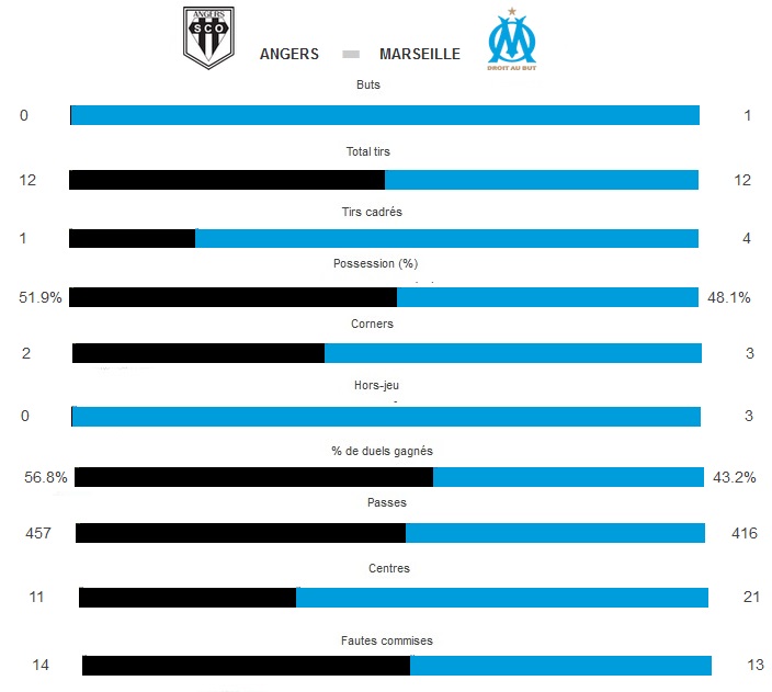 L'OM mathématiquement sauvé Trois mois après son dernier succès en Ligue 1, l'OM a retrouvé, à Angers, les joies de la victoire et assure définitivement sa place parmi l'élite pour la saison prochaine. L'Olympique de Marseille a pris le match par le bon bout. Même si Angers s'est procuré la première occasion dangereuse de la partie avec une tête de Yattara qui est passée juste à côté des buts de Mandanda, ce sont les Olympiens qui ont pris le jeu à leur compte en passant notamment par les côtés. Ils ont eu de bonnes opportunités sans pour autant cadrer leurs frappes. Alessandrini tentait une reprise sur une balle mal repoussée par la défense angevine, Batshuayi ratait complétement une reprise suite à un centre de Thauvin, qui tentait un centre-tir quelques minutes plus tard. Le SCO réagissait avec un coup franc de Mangani contré par le mur marseillais. Fletcher faisait ensuite parler sa taille en plaçant une tête à côté. Alors que la bataille faisait rage au milieu de terrain où l'on retrouvait une grande majorité des joueurs et des duels. L'Ecossais s'illustrait avec une passe pour Batshuayi. Le Belge s'enfonçait dans la surface avant de placer un tir croisé qui faisait mouche. En variant son jeu, en jouant alternativement sur les côtés et dans l'axe, l'OM a réussi à faire plier la troisième meilleure défense du championnat en moins d'une demi-heure. Les hommes de Passi ont alors laissé la balle aux locaux afin de jouer le contre. Mais les joueurs du SCO, hormis une tête de Ndoye au-dessus, butaient sur la défense marseillaise. Mendy s'essayait de loin juste avant que Batshuayi n'effectue un raid plein axe. Malheureusement, son tir échouait de peu à côté du poteau de Letellier. Grâce à l'ouverture du score, l'OM retrouvait de la confiance et attaquait la seconde période de la bonne manière : avec du jeu et des occasions. Après une ouverture lumineuse de Barrada, Alessandrini, légèrement excentré sur la droite, tentait une frappe osée qui frôlait la lucarne du SCO. Batshuayi, lancé par Flectcher, comme sur le but en première période, se retrouvait seul face à Letellier mais perdait son duel contre le portier d'Angers. Visiblement fatigués par leur match de milieu de semaine, les hommes de Moulin pêchaient souvent dans le dernier geste comme par exemple sur une reprise complétement raté de Ketkeophomphone. L'OM gérait tant bien que mal et Passi lançait au fur et à mesure Diarra, Cabella et Sarr. En fin de partie, les Olympiens passaient en 4-2-3-1 avec Fletcher à gauche. Ce changement de système n'altérait pas leur sérénité. Le SCO avait la balle mais ne faisait pas de bonnes choses avec, d'où le faux-rythme qui s'installait peu à peu. Mais la défense olympienne tenait bon face aux maladroits assauts des "noir et blanc". Avec ce succès, le premier en Ligue 1 depuis 3 mois, l'OM compte huit points d'avance sur le premier relégable et assure donc sa place dans l'élite pour la saison prochaine. Joueurs, dirigeants, supporters peuvent souffler un grand " ouf " de soulagement et peuvent désormais se projeter sur les deux dernières journées et surtout la finale de coupe de France avec sérénité. Auteur : Frédéric Rostain |