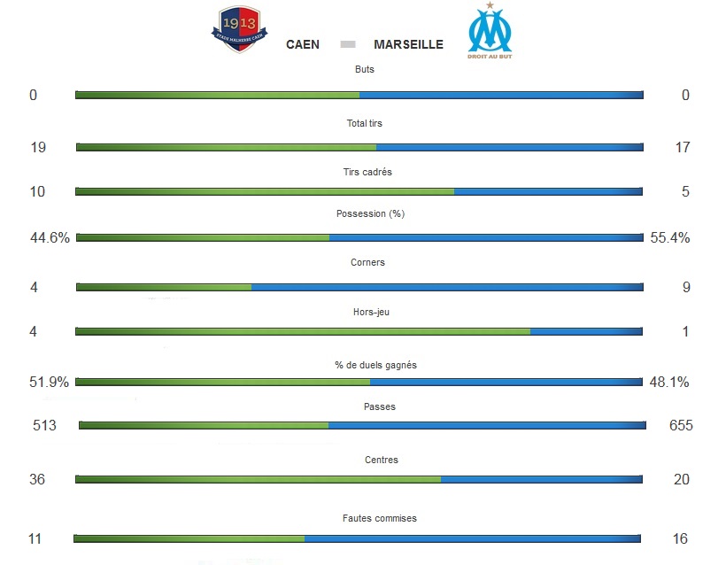Réduits à dix après l'heure de jeu, les Olympiens se sont qualifiés pour les seizièmes de finale de coupe de France grâce à un Steve Mandanda exceptionnel. La saison 2015-16 de l'OM avait débuté par une défaite face à Caen à domicile. L'année 2016 commence, elle, non pas par une victoire, mais par une qualification face aux Normands, sur leur terrain. Dimanche soir, au stade Michel d'Ornano, les Olympiens se sont qualifiés pour les 16es de finale de la coupe de France après un match qui laissera des traces en raison des blessures et des suspensions. La série noire a débuté par le carton jaune de Nkoulou qui le privera du quart de finale de coupe de la Ligue à Toulouse. Peu après l'heure de jeu, Rekik taclait Delort à l'entrée de la surface et écopait d'un carton rouge. Puis Mendy se blessait avant que son remplaçant, De Ceglie ne sorte à son tour après un violent contact à la tête. Autour de ces événements, l'OM n'a pas affiché son plus beau visage pour sa première sortie de l'année civile. Les occasions marseillaises n'ont été ni très nombreuses, ni très dangereuses. Ocampos a eu la première, Diarra a eu la plus belle sur corner, contraignant Vercoutre à repousser en deux temps de la main et du pied. Isla, de la tête, a eu la sienne sur un coup franc de Barrada. Ocampos a eu deux balles de match dans le temps réglementaire. Batshuayi en a également eu deux, bien trop peu en 120 minutes de jeu. Car oui, malgré l'hécatombe côté OM qui a fini à 10 contre 11, les hommes de Michel ont tenu face aux assauts des Normands, avec un Delort déchaîné. Mais ils avaient face à eux un Mandanda en grande forme, en très grande forme même. L'OM était amputé de plusieurs éléments pour cette rencontre tels Alessandrini, Cabella, Nkoudou, Sarr ou Djadjédjé d'où un onze de départ largement modifiée qui a eu du mal à entrer dans la partie. Caen donnait le tempo au match. Les Marseillais ont eu un quart d'heure de domination au beau milieu de la première période. Mais cela était insuffisant. La seconde période était bien moins rythmée. La fatigue gagnant les deux camps, la prolongation l'était encore moins. Il y a pourtant eu un but olympien, refusé pour un hors-jeu de Batshuayi. Et comme l'année dernière au même stade de la compétition, il a fallu attendre la séance des tirs au but pour départager les deux équipes. Déjà énorme tout au long du match, Mandanda sortait alors le très grand jeu. L'international français stoppait les deux premiers tirs au but caennais. Diarra, Rolando, Batshuayi mettaient les leurs. Le gardien olympien stoppait ensuite le quatrième et envoyait l'OM en seizième de finale de coupe de France. Malgré les absences, les blessures, l'expulsion de Rekik et une infériorité numérique pendant près d'une heure, les Olympiens ont fait preuve de beaucoup de courage et d'abnégation pour se qualifier contre le cours du jeu. Si le contenu n'était pas à la hauteur, la qualification est dans la poche des Marseillais qui sont, en 2016, en lice dans les quatre compétitions.