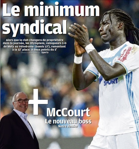 L'OM s'impose face à Metz pour le dernier match de l'ère Louis-Dreyfus (1-0) Non sans difficultés, l'OM a réussi à s'imposer sur la pelouse du stade Vélodrome face à Metz lors de la 9e journée de Ligue 1 (1-0). Le dernier match sous l'ère Louis-Dreyfus s'est soldé par une victoire acquise grâce à Bafétimbi Gomis, le buteur olympien. Les Olympiens ont bien débuté la rencontre, multipliant les occasions de but. Justement, juste avant le quart d'heure de jeu, Gomis a inscrit son sixième but de la saison sur un corner de Florian Thauvin (1-0, 13). Il s'est repris à deux fois pour tromper la vigilance du gardien messin, Didillon. Incapables de se mettre à l'abri en première période malgré de nombreuses occasions franches, les Olympiens ont joué la deuxième période en restant sous la menace d'une égalisation messine. Mais fort heureusement pour l'OM, les attaquants du FC Metz, Mevlut Erding en tête, se sont montrés maladroits. En fin de rencontre, tout le public du stade Vélodrome a tremblé lorsque Hiroki Sakai a repris un centre messin dans sa surface de réparation. Son tacle peu académique a frôlé le montant droit de Yohann Pelé (88). Dans la douleur, les hommes de Franck Passi ont conservé leur avantage. Ils remontent à la douzième place du classement avec douze unités au compteur après 9 journées disputées. Demain, une nouvelle ère débute avec la prise de fonction officielle de Frank McCourt à la tête du club. Auteur : Pierre-Antoine Trossero |