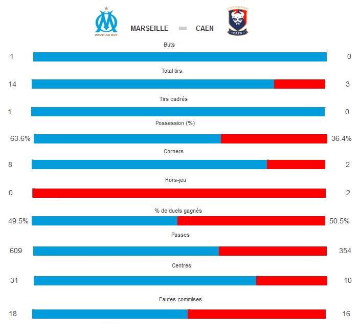 L'OM domine Caen (1-0) et offre à Garcia sa première victoire en Ligue 1 Au terme d'une rencontre assez triste, l'OM a battu Caen dans la difficulté grâce à une réalisation de Rolando en fin de rencontre (1-0, 81). Un succès étriqué des Olympiens qui ont offert la première victoire de la saison à Rudi Garcia en Ligue 1. En première période, l'OM a largement dominé les Caennais. Mais seul Rekik et Alessandrini ont eu une véritable occasion d'ouvrir le score. Sur un corner de Thauvin, Rekik n'a pas cadré sa reprise de la tête (17). Alessandrini a trouvé l'extérieur du filet de Vercoutre en fin de première mi-temps (41). Un bilan bien maigre en 45 minutes de jeu. Au retour des vestiaires, les joueurs de Rudi Garcia ont dominé territorialement des Caennais venus uniquement pour défendre. Mais là encore, le manque d'efficacité et de justesse technique n'a pas permis aux Olympiens d'ouvrir le score. Il a fallu attendre le dernier quart d'heure pour assister aux occasions franches des partenaires de Bafétimbi Gomis. Thauvin a raté sa reprise de la tête sur un centre de Lopez, pourtant seul devant le but (78). La délivrance est venu de Rolando. Servi idéalement par Gomis et laissé seul par les défenseurs caennais, il a donné la victoire aux hommes de Rudi Garcia (1-0, 81). Un but qui vaut trois points. L'OM conserve son invincibilité à domicile cette saison. C'est la quatrième victoire à domicile des Olympiens. Au classement, l'OM remonte à la onzième place avec 17 points au compteur après 13 journées disputées.. Auteur : Pierre-Antoine Trossero |