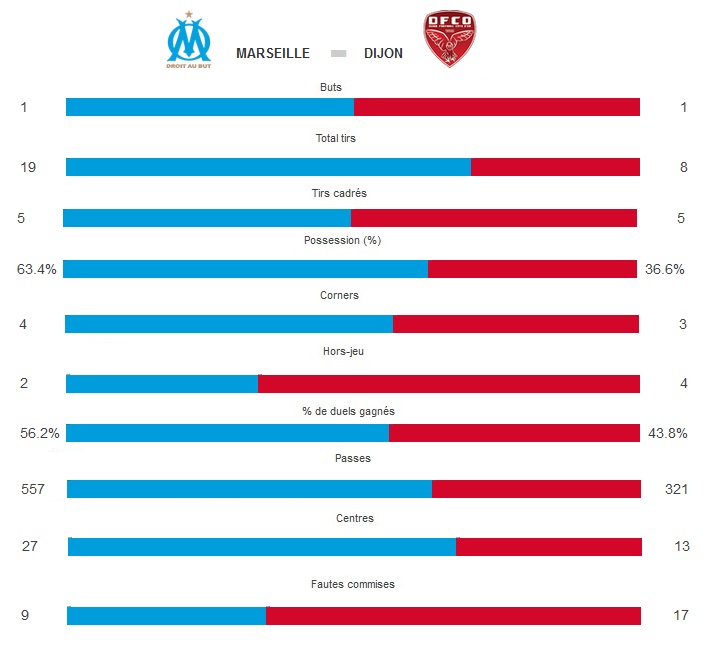 Un point, et des regrets Malgré un superbe coup franc de Payet, l'OM n'a pu faire mieux que match nul à domicile face à Dijon lors de la 31e journée de Ligue 1 2016-17. En se basant sur les dynamiques des deux équipes, la réception de Dijon par l'OM pouvait ressembler à une formalité pour les Olympiens. Mais on le sait, dans le football, aucun match n'est facile, surtout quand l'adversaire lutte pour sa survie dans l'élite et annonce clairement la couleur en affirmant vouloir disputer un match de coupe à l'Orange Vélodrome. Les Bourguignons ont joué crânement leur chance et ne sont pas passés loin du hold-up parfait en menant à la pause sur un but contre son camp de Sertic sur corner dans le temps additionnel de la première période. Les Dijonnais avaient allumé la première mèche dès la cinquième minute avec un duel entre Tavares et Pelé. Le gardien olympien sortait vainqueur de ce face-à-face avec autorité. Les Marseillais réagissaient pourtant bien avec une tête de Thauvin à côté, un tir lointain de Sertic, une frappe de Payet ou encore une tentative de Gomis, après un raid de Payet dans la défense, sauvée sur la ligne. Mais les assauts olympiens n'étaient pas cadrés. Incapables de mettre du rythme face à une équipe regroupée en 4-5-1, les Marseillais s'exposaient à la moindre erreur, qui eut lieu sur le corner bourguignon dans les arrêts de jeu. Cependant, tout aurait pu être différent. En effet, le tournant de la première période est intervenu à la demi-heure de jeu avec une main dijonnaise dans la surface sur un tir de Payet. Mais cette faute, plutôt évidente, était oubliée par l'arbitre... Menés à la pause, les hommes de Rudi Garcia ont réussi à accélérer le jeu dans les toutes premières minutes de la seconde période. Ils égalisaient rapidement sur un superbe coup franc signé Payet. Le Réunionnais trouvait la lucarne de Reynet qui ne pouvait rien malgré un beau plongeon. Regonflés à bloc par ce retour au score, les Marseillais essayaient d'enfoncer le clou. Thauvin touchait le poteau puis Payet trouvait Reynet sur sa route. Dans les dix dernières minutes, avec l'aide du public qui poussait, Gomis, par deux fois, puis Vainqueur étaient proches de donner l'avantage à l'OM. Les entrées de Cabella, Zambo Anguissa et Njie ne changeaient rien. Et la défense dijonnaise tenait bon. Jusqu'au bout hélas... Avec ce nul, l'OM poursuit sa série sa série d'invincibilité avec un quatrième match sans défaite (2 succès puis 2 nuls) mais est désormais sous la menace directe de Bordeaux, à un point qui se déplace à Nice dimanche soir et même de Saint-Etienne qui jouera à Monaco à une date non encore déterminée puisque l'ASM joue samedi soir la finale de la coupe de la Ligue et est encore en lice en Champions League. Ce point comptera probablement dans le sprint final mais le match et notamment la seconde période peuvent laisser des regrets aux Olympiens... Auteur : Frédéric Rostain |