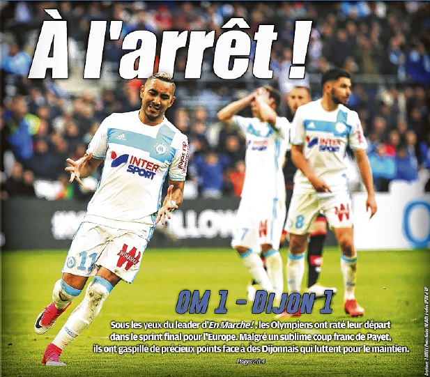 Un match en queue de poisson En ce 1er avril, l'OM a évité la mauvaise blague de la défaite à domicile face à Dijon (1-1), hier après-midi, au Vélodrome Un exploit. Olivier dall'Oglio, l'entraîneur dijonnais, n'a pas hésité à employer les grands mots pour qualifier le point pris par son équipe au Vélodrome. On peut le comprendre, sur le papier, parce qu'entre un OM qui vise l'Europe et un Dijon qui joue le maintien, théoriquement, il n'y avait pas photo. Sauf que... Justement, il faudrait peut-être que les Olympiens fassent ce qu'il faut pour être sur la photo des lauréats de fin de saison et pas qu'ils croient qu'être l'OM, se présenter avec le maillot blanc à Marseille, ça suffit. Et pour la photo, on préfère le geste d'un coup franc dans la lucarne à n'importe quelle célébration qui se voudrait originale. D'abord, on se bouge, on joue bien, on marque et après on peut se faire remarquer, si on en a envie. Hier, l'OM a surtout marqué mal. Au classement, paradoxalement, les conséquences ne seront peut-être pas immédiates. Saint-Étienne ne joue pas et Bordeaux va à Nice. L'OM sera peut-être encore cinquième ce soir. Mais peut-être pas. Et sûrement pas s'il continue d'aligner des matches comme ceux que l'on vient de voir, disons plutôt de subir, à Lille puis face à Dijon. L'exploit ? On serait totalement d'accord si l'équipe bourguignonne avait dû accomplir des choses incroyables pour obtenir ce résultat. Mais ce match que les deux équipes auraient pu gagner (ou perdre), on a surtout le sentiment que c'est l'OM qui l'a lâché, en le commençant trop tard. Aucun tir cadré en première période, c'est tout simplement minable. Certes, le but dijonnais, avant la pause, est chanceux. Bedimo a laissé filer le ballon du corner, qui est passé entre les jambes de Gomis, puis a rebondi sur celles de Sertic qui a marqué contre son camp. Un but en bois, mais au départ, le corner obtenu en contre était le signe d'une certaine fébrilité défensive olympienne. L'égalisation fut d'un autre calibre. Percée de Lopez, faute d'Abeid, coup franc magnifique de Payet pleine lucarne. À partir de là, l'OM avait 45 minutes pour gagner et ne l'a pas fait. Rudi Garcia : "Il va falloir se réveiller" On peut toujours avancer que l'arbitrage n'a pas été non plus exempt de tout reproche, que M. Hamel a eu tort de ne pas siffler penalty en première période quand Loties a dévié du bras un tir de Payet et que ce bras était vraiment détaché du corps. On ne comprend pas non plus que Varrault n'ait pas été averti pour son tacle sur Sakai ; quand il l'a été, plus tard, il aurait dû prendre un rouge. Abeid et Rolando ont été dans le même cas. Mais cela ne change rien à l'indigence d'une première période olympienne où Thauvin a trop décroisé une reprise de la tête et raté un contrôle sur une ouverture de Lopez. Mais où rien d'autre ne s'est vraiment passé car c'est plutôt en fin de match que ça s'est animé et que Baptiste Reynet et Yohann Pelé ont été décisifs. L'OM aurait pu gagner sur cette petite passe de Cabella et ce tir de Vainqueur, qui aurait pu choisir de placer le ballon sur un côté mais a tiré droit et vu Reynet s'envoler. Dijon aurait pu gagner peu après, sur ce contre où Sertic a laissé Tavares le doubler et frapper dans un angle réduit, mettant Pelé en exergue. Mais finalement, le nul est une juste sanction pour les uns, trop mous, et une juste récompense pour les autres, pas irrésistibles non plus. Et tout autant qu'au classement, ce résultat peut influer sur le moral et la confiance. Aux Olympiens de réagir... Auteur : Mario Albano |