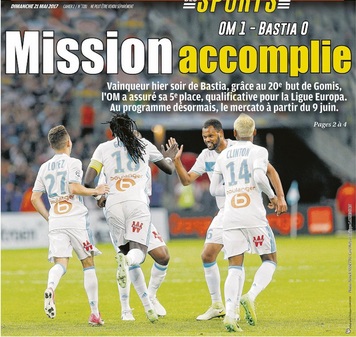Européen ! La victoire, étriquée mais porteuse d'avenir, obtenue contre Bastia ouvre les portes de l'Europa League, après un an d'absence sur la scène continentale. Une bonne raison pour passer un agréable début d'été. Le 27 juillet 2017, l'OM entamera la 29e campagne européenne de son histoire. La 12e du XXIe siècle. Après un an d'abstinence, le club revient sur la scène du Vieux continent. Un passeport obtenu sur le terrain au terme d'une saison marquée par un changement d'actionnaire, un changement de président, un changement d'entraîneur, le retour de Dimitri Payet, la révélation de Maxime Lopez, la consécration de Morgan Sanson comme meilleur passeur de Ligue 1, celle de Florian Thauvin, élevé au titre de meilleur Olympien par les supporters. Une saison marquée encore par des joies et des déconvenues, par des résultats incertains dans la partie première de l'histoire, plus convaincants et significatifs dans la phase finale. Le succès obtenu contre Bastia est le reflet de la saison. Il n'y a pas eu de certitude, la libération a été tardive comme l'obtention du ticket européen en somme. Face au 5-3-2 bastiais, l'OM a éprouvé de nombreuses difficultés pour contourner l'organisation défensive présentée par les insulaires. Il n'y a pas eu suffisamment de vitesse dans les transmissions, l'animation dans les couloirs a été déficiente, canalisée il est vrai par le placement adverse. Il a été nécessaire d'être patient. Avec le temps, Bastia a plié, avant de rompre. Les occasions ont succédé aux occasions, Leca a retardé l'inéluctable avec des parades de grande classe, mais Gomis a un mis un terme à cet état de grâce d'une tête libératrice. Il suffisait d'un petit rien, de peu pour être heureux. Le peu, mais déterminant reconnaissons-le, est né certes dans la douleur mais une liesse des grands soirs, car le stade a été d'un soutien indéfectible. La 67e page de l'OM parmi l'élite se tourne sur une note d'avenir. Dans la refonte du club, orchestrée depuis plusieurs mois par Frank McCourt et Jacques-Henri Eyraud, l'Europa League représente une étape de progression avant de viser plus haut. Une marche bienvenue et nécessaire avant d'ambitionner une autre planète, avant de retrouver la grande et belle coupe, celle aux grandes oreilles, celle remportée à ce jour par un seul club français : l'OM. Auteur : Thierry Muratelle |