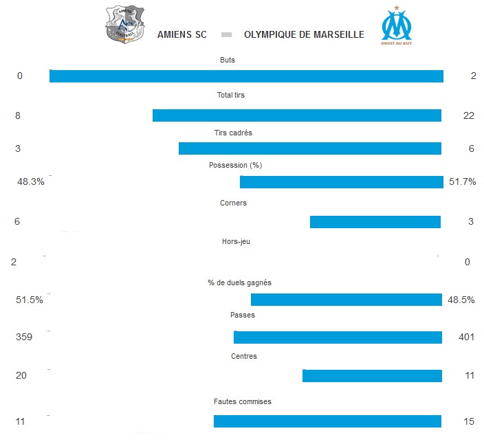 AssOMmant... Le club olympien a renoué avec la victoire en championnat après avoir battu Amiens (2-0), hier à la Licorne, grâce à un doublé de Clinton Njie. Un succès obtenu au terme d'un nouveau match soporifique, mais qui fait un bien fou à Rudi Garcia et ses hommes L'OM a fait l'essentiel, hier, en s'imposant à Amiens (0-2). Le club olympien retrouve ainsi le chemin du succès en championnat après un nul face à Angers (1-1) et deux (lourdes) défaites de rang, à Monaco (6-1) et contre Rennes (1-3). Ce qui, finalement, ne lui était plus arrivé depuis le 14 août dernier et un déplacement à Nantes. L'OM doit donc le savourer à juste titre. Il faut même s'en réjouir car cette victoire, acquise face à un promu, permet à Dimitri Payet et sa bande de reprendre leur marche en avant au classement (6e avec dix points) et d'engranger de la confiance. Par ricochet, et ce n'est pas négligeable, elle leur évitera sans doute de vivre un nouveau dimanche en enfer, le week-end prochain, pour la réception de Toulouse au stade Vélodrome. Idem pour Rudi Garcia, qui s'est adapté à l'adversaire en alignant une composition d'équipe plus athlétique. Un onze de départ qui comportait même des joueurs qu'on ne pensait plus revoir, après le rachat du club et le "grand rendez-vous de l'été" dans un "OM Champions Project" : Anguissa au milieu, Ocampos et Njie devant. Au coeur des critiques depuis la fin du mois d'août, l'entraîneur de l'OM pouvait apprécier le bon résultat de ses ouailles. "Je suis resté concentré sur le jeu, sur mes joueurs, sur la préparation du match. Tout en sachant qu'il vaut toujours mieux gagner les matches...", expliquait-il, à propos des critiques, en quittant la Licorne. Quelques minutes plus tôt, "RG" avait résumé la rencontre : "À la mi-temps, le match nul était logique. À la fin, la victoire de l'OM est sans contestation possible". Voilà pour le constat et l'analyse. Mais personne n'est dupe sur la qualité de ce match de bourrins et sur la prestation marseillaise, d'un ennui épatant. En plein week-end des Journées du patrimoine, l'OM s'est même évertué à rejouer Les Précieuses ridicules en première mi-temps. Dans un style forcément moins enlevé que la version originelle de Molière, mais avec d'autres péripéties : un entraîneur qui pleure sans cesse contre l'arbitrage, des joueurs qui l'imitent (Thauvin et Njie en tête) avant de préférer se regarder jouer, et une réponse au défi physique imposé par les Picards pas toujours dans le bon tempo. Un seul tir cadré sur onze tentatives pendant les 45 premières minutes Durant ce florilège de 45 minutes, pendant lequel l'OM n'a cadré qu'un tir sur onze, ce sont même les protégés de Christophe Pélissier qui ont eu les occasions les plus chaudes. Et sans le "Roi des clean-sheets", Yohann Pelé (lire en page suivante), doublement décisif sur une tête d'Adenon (32) ainsi qu'une reprise de Konaté (33) dans une minute encore plus folle que celle de René Malleville, le match aurait pu basculer du mauvais côté... Fort heureusement pour les Marseillais, la donne a changé après la pause. On aurait pu s'y attendre car c'est un trait de caractère récurrent de l'équipe de Rudi Garcia, qui débute très souvent plus mal qu'elle ne finit, sauf contre les grosses écuries... Mais les Amiénois, cuits physiquement après leur débauche d'énergie, ont craqué en deux petites minutes. Et l'OM s'en est remis à Clinton Njie (lire ci-contre), titularisé à la place de Valère Germain, pour arracher les trois points. Auteur d'un doublé, le Camerounais a commencé par marquer... du ventre pour reprendre un centre de Sakai, dévié par Adenon, et battre Gurtner (53). Son deuxième but, inscrit dans le jeu au terme d'un joli mouvement initié par Payet et prolongé par Thauvin (55), était nettement plus agréable pour les yeux des spectateurs. La colonie de supporters marseillais, qui a chanté sans jamais s'interrompre pour soutenir son équipe, n'en demandait pas plus pour exulter. Décidément, cette équipe est assOMmante !