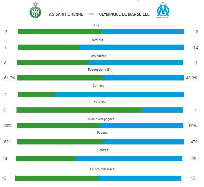 La neige et le froid n'ont pas engourdi les Olympiens qui, comme d'habitude depuis leurs récentes sorties en 2018, attaquent les rencontres pied au plancher. Ils donnent rapidement le ton dans un match débridé par les flocons de neige. Ces derniers ont pris le dessus à quelques minutes du coup d'envoi, sur la pelouse du stade Geoffroy-Guichard. Thauvin ouvre le score à la 4e minute de jeu, à la réception d'un centre de Sakai. Les Stéphanois rétorquent en égalisant à la 9e minute, sur un but de Monnet-Paquet. Les Marseillais reprennent l'avantage et concrétisent la domination, avec le second but signé Sanson, sur un centre de Sarr à la 20e minute. Sarr maîtrise son jeu dans cette confrontation. Un bon travail défensif qui permet de repousser les Verts. Dans ce feuilleton presque parfait jusque-là, on note un point noir, avec la sortie inattendue sur blessure de Mandanda (43e). Il est remplacé au pied levé par Pelé. Sanson et ses coéquipiers passent outre ce coup dur et retournent au vestiaire (se réchauffer) en conservant l'avantage. Au retour des vestiaires, les Verts essayent de presser haut, dans des conditions météorologiques de plus en plus difficiles. Pour redonner des couleurs, Jean-Louis Gasset effectue trois changements à quelques minutes d'intervalle. Le rythme de la partie est moins intense et les locaux prennent l'ascendant dans le jeu sans se montrer réellement dangereux. Avec un Payet très actif sur son flanc gauche, les Phocéens ne trouvent pas la faille une troisième fois. A moins d'un quart d'heure de la fin, les Marseillais sont moins présents à la récupération et encaissent un nouveau but synonyme d'égalisation (76e). Béric trompe Pelé de la poitrine à la réception d'un centre de Bamba. Rudi Garcia procède à un troisième et dernier changement à la 83e minute, en remplaçant Sanson par Mitroglou. Les Marseillais encaissent finalement deux buts à Saint-Etienne (2-2) et perdent deux points dans le Forez. Les Verts ont bien changé depuis la défaite au match aller au stade Orange Vélodrome, le 10 décembre dernier (3-0). L'OM manque l'occasion de conforter sa deuxième place au classement. Le risque de voir Monaco passer devant et Lyon se rapprocher est grand. Auteur : Ambrine Ziani |