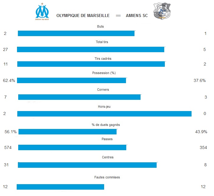 L'OM s'est imposé contre Amiens mais sera privé de Ligue des champions la saison prochaine |