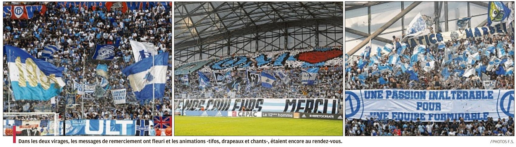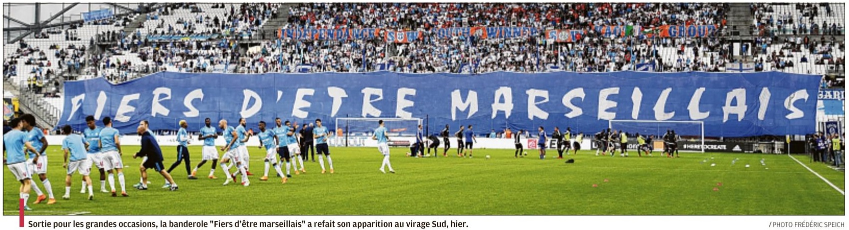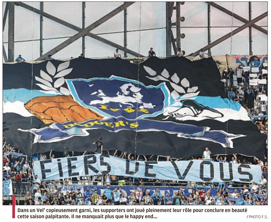 Les 56 120 fidèles présents hier soir dans l'enceinte du boulevard Michelet ont encore une fois mis une superbe ambiance Fiers d'être Marseillais". Depuis des lustres et des lustres, un certain 12 mars 1993 en marge d'un OM-Bordeaux, selon les historiens de la Vieille Garde, elle est déployée pour les grandes occasions. En lettres blanches sur fond bleu, la majestueuse et mythique bâche du Commando Ultra 84 trônait encore au bas du virage Sud, hier, jusqu'à dix minutes du coup d'envoi. Une autre toute fraîche a ensuite pris sa place : "Vous avez honoré nos couleurs... Merci !" C'était un joli résumé de la soirée, la dernière de l'année dans un Vélodrome incandescent et peuplé par 56 120 supporters en délire, pour remercier les Olympiens de leur saison riche en émotions. Car du 27 juillet au 19 mai, il s'en est passé ! "Fiers de vous", c'était aussi le message envoyé dans le virage Nord par les MTP et les Dodgers. À quelques pas de là, l'armée des torses nus des Fanatics faisait honneur à sa réputation de fada dans une zone aussi tassée que les pastis servis aux abords du stade. Elle devait initialement être fermée après une sanction de la commission de discipline de la LFP, mais l'OM et les autorités avaient demandé un report de la punition. Requête validée, présence assurée. Bruyants à souhait, ils pouvaient brandir leur banderole de poètes : "Une passion inaltérable pour une équipe formidable". En face, les South Winners affichaient un gigantesque tifo de papier, orné d'un OM et suivi d'un coeur surmontant la croix de Marseille. Le ton était donné. L'avant-match avait également été marqué par la présentation d'une partie des glorieux anciens de 1993, à une semaine du 25e anniversaire de l'épopée victorieuse de Munich. Forfait et en tenue de ville sur le bord du terrain pendant que ses coéquipiers s'échauffaient, le capitaine Dimitri Payet, accompagné par l'un de ses fils, a lui aussi eu droit à un hommage, astucieusement lancé par André Fournel, le speaker du stade, et repris par les virages. De l'amour, il y en avait donc à revendre dans les travées de l'enceinte du boulevard Michelet. Et de la folie aussi, ce thème repris en mantra marketing par le nouvel OM. Une hystérie collective qui s'est rapidement exprimée avec le but de Morgan Sanson (10), superbement servi par Boubacar Kamara. Le moment idéal pour offrir une tournée générale de fumigènes et faire tourbillonner les drapeaux dans un boucan d'enfer. Rebelote à la 18e avec le 2-0, inscrit par l'opportuniste Kostas Mitroglou. Un déluge de vivats dévalait des tribunes. Au même moment, dans un Parc OL (as) stické à la marseillaise, Alassane Pléa donnait l'avantage à Nice. Mais à Marseille, le célèbre "Aux Armes" retentissait à gorges déployées. Vibrant, percutant. Thauvin applaudi La réduction de l'écart signée Moussa Konaté n'a pas entamé la confiance des fidèles. Une envolée de Mandanda, une occasion (gâchée) par Mitroglou, un début de contre-attaque, toutes les actions de cet ultime match étaient escortées par un brouhaha à tout rompre. Et, à l'image de la saison, par certains frissons. De Marseille à Lyon, un périple qui se sera étiré bien après la finale de la Ligue Europa, Memphis Depay éteignait pendant quelques secondes la fureur et la ferveur du Vel' avec son doublé. L'entrée en jeu de Valère Germain était accompagnée par quelques sifflets sévères quand Rolando, le héros de Salzbourg sorti sur blessure, a eu droit à une belle ovation. Au final, même la déception de la non-qualification en Ligue des champions, entérinée après le triplé de Depay, n'a pas semblé altérer la joie des plus vaillants supporters de France. Florian Thauvin, sortait sous les applaudissements tandis qu'en tribune, l'autre mondialiste de la bande, Adil Rami, croyait que Nice avait égalisé à trois partout. Une clameur surprenante s'emparait alors de Ganay sans que l'on sache pourquoi. Une chose est sûre : ils étaient "Fiers de vous" jusqu'au bout.. Auteur : Jean-Claude Leblois |