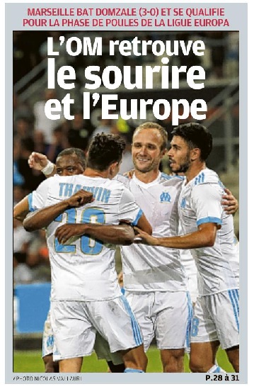 Le réalisme retrouvé Malgré de grosses frayeurs et la blessure de Rami en première période, l'OM a surclassé Domzale hier et jouera logiquement la phase de poules Le premier objectif de la saison est atteint : l'OM s'est donc qualifié pour la phase de poules. Un minimum ? Peut-être. Mais Bordeaux n'y sera pas et son bourreau au tour précédent, Videoton non plus. Pas plus que Fenerbahce, le FC Bruges, le Legia Varsovie, qui avaient des indices supérieurs à celui de l'OM et qui, comme les Glasgow Rangers, Panathinaikos, Ajax, Galatasaray ou le PSV Eindhoven, regarderont les coupes d'Europe à la télé, sans y participer. Dans un premier temps, l'OM était "coubertinien" : l'important était de participer. On saura aujourd'hui à 13h, quelles sont les chances de bien figurer, selon un tirage qui détermine souvent l'avenir d'un club dans une phase de poules, en fonction de sa bonne fortune ou de sa poisse, à Monaco. Comme par le passé en tour préliminaire de la Ligue des champions face à l'Austria de Vienne ou Brann Bergen, l'OM a souffert. Mais là où cette équipe avait fait preuve d'une grande maladresse dimanche contre Angers, elle a su profiter de ses occasions avec un réalisme rassurant et elle a pu compter sur les fautes de pieds de Domzale, avec un soupçon de chance. Il est vrai qu'en perdant Adil Rami, touché au niveau du pectoral droit en tombant mal, au bout de 23 minutes, l'OM avait déjà donné en termes de malchance. Et encore heureux que le coup franc sifflé contre Rami, coupable d'être revenu sur le terrain sans l'autorisation de l'arbitre après les premiers soins, n'ait pas été transformé en but par Balkovec, celui-ci tirant sur le poteau. Alors que Blazic et Vetrih avaient raté le ballon, tous seuls face au but à la faveur d'un corner dès la 5e minute et que le but du premier cité, à la reprise d'un coup franc peu après, avait été refusé pour un hors-jeu assez net, tandis qu'Ocampos avait mis deux reprises de la tête à côté en moins de quatre minutes, sur des centres au premier (Sakai), puis au deuxième (Thauvin) poteau, on pensait s'acheminer vers un match équilibré, crispé, nerveux, à l'image des contacts souvent au-delà des limites qui eurent lieu pendant la première période. Mais, tandis que Bizjak avait encore manqué l'immanquable, Valère Germain avait ouvert le score, de la tête, sur un centre millimétré de Maxime Lopez. Ainsi, à la pause, tout en tremblant sur ses bases, l'OM possédait l'avantage que Domzale avait à l'aller. Et comme à Ljubljana, c'est l'équipe marseillaise qui a dominé la seconde période. Techniquement, tactiquement, avec le passage en 4-2-3-1, physiquement, au fil des minutes. 3-0, cela paraît sévère au vu de la première période. Mais pas de la seconde Il suffit de comptabiliser les occasions (un seul tir de Sirok repoussé par Mandanda) pour comprendre que les Slovènes ont été surclassés au fil des minutes, en dépit des fautes techniques d'Ocampos, d'un sauvetage de Milic sur une tête de Germain, d'un carton très sévère pour Thauvin. Mais ce dernier a vraiment donné le ton après la pause, en offrant intelligemment le deuxième but à Germain, d'un centre au-delà du deuxième poteau, transformé en but avec patience et intelligence par l'avant-centre olympien, dont les stats européennes avec l'OM sont pour l'heure exceptionnelles (voir page suivante). Et comme il n'est pas ingrat, il a rendu la politesse à Thauvin en lui servant la balle du 3-0. À l'arrivée, cela paraît sévère au vu de la première période. Mais pas de la seconde. Réalisme retrouvé, qualification assurée.
