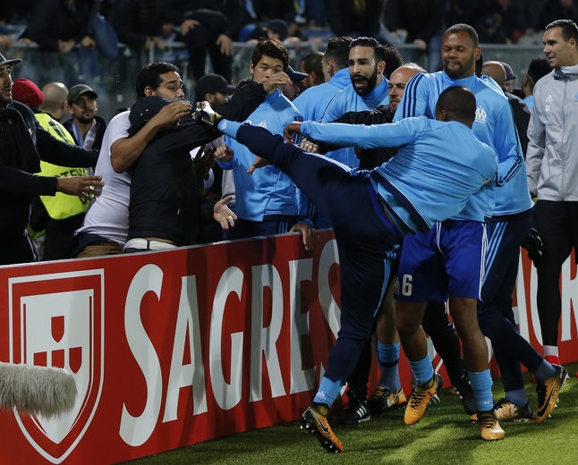Evra, mauvais kung-fu panda Insulté pendant l'échauffement, le latéral gauche a mis un coup de pied à un supporter de l'OM C'est le geste de la soirée. Et on aurait franchement préféré s'en passer pour tout ce qu'il véhicule. Copieusement insulté par les supporters de l'OM durant l'échauffement, à quelques minutes seulement du coup d'envoi du match contre le Vitoria, Patrice Evra a complètement craqué en expédiant un coup de pied, du gauche s'il vous plaît, dans la bouche d'un fan olympien mécontent. "Dégage de l'OM !", "T'es nul !", lui disaient-ils, notamment, avant de lui déverser un tombereau de noms d'oiseaux, en chanson, dans les oreilles. Des invectives envoyées au visage de l'ex-Mancunien durant une demi-heure, à peu près. D'abord détendu, l'ancien international leur répondait par des baisers, envoyés depuis le terrain, où il s'échauffait en compagnie des remplaçants du soir. Il est allé les voir pour demander des explications. Devant leur insistance, il s'est fissuré une première fois en tirant un ballon en direction du parcage, rempli par un peu moins de 500 supporters (encadrés par seulement 13 stadiers de l'OM). Ils ont alors dégoupillé et quitté leur zone en enjambant les barrières pour venir à son contact, alors que la sécurité portugaise était absente. Exclu avant la rencontre, du jamais vu Les coéquipiers d'Evra, des membres du staff et de la sécurité se sont alors mis au milieu pour éviter la confrontation entre les Marseillais et le natif de Dakar. Rolando a même essayé de retenir son partenaire, tout comme Adil Rami et Paolo Casale, un préparateur physique. Quelques gifles sont parties, mais aussi des câlins, pour Luiz Gustavo, qu'on a vu enlacé. "Tonton Pat (atras)" les a contournés grâce à un jeu de jambes rapide et précis, s'est élancé dans les airs pour, finalement, viser la tête de cet individu énervé... Rapatrié illico vers le banc de touche marseillais, Patrice Evra a ensuite été logiquement exclu par Tomas Bognar, l'arbitre de la rencontre, juste avant le coup d'envoi. Du jamais vu ! Il a donc regagné les vestiaires la tête basse. Pendant que cette scène surréaliste prenait corps dans l'enceinte de l'Estadio D. Afonso Henriques, et dans la confusion générale, d'autres "fans", qui avaient envoyé des projectiles sur les fidèles socios portugais, se sont retrouvés face à d'autres ultras viramanenses. Les coups ont plu de toutes parts, nécessitant l'intervention des forces de l'ordre. Le mal était déjà fait. Alors, Patrice Evra - Éric Cantona, même combat ? Pas vraiment puisque le "King", en janvier 1995, avait visé un fan de l'équipe adverse en quittant le terrain. Dans une autre mesure, au stade Vélodrome, Djamel Belmadi, en mars 2001, avait envoyé une chaussure sur un fan de l'OM. Dans un temps plus lointain, à la fin des années 50, Jean-Jacques Marcel était lui monté dans les tribunes du Vel' pour en castagner un. Voilà pour l'historique non-exhaustif. Quelle décision va prendre l'OM ? "I am craaaaaaaaaaaaaaaazy", criait le joueur débarqué de la Juventus en janvier sur son dernier chef-d'oeuvre posté sur les réseaux sociaux en début de semaine. Une vidéo dans laquelle on le voyait grimé pour fêter Halloween. Des facéties qui ne sont pas du tout du goût des supporters, vu le niveau qu'il affiche. À tort ou à raison... Pendant ce temps, à 21h06, le site de l'UEFA voyait les choses autrement. "Il y a une belle ambiance à Guimaraes ce soir", pouvait-on lire sur le direct de la rencontre. Sauf que l'instance européenne va se pencher sur son cas et celui du Vitoria pour l'absence de sécurité. Toujours est-il que, pour le joueur, la sanction pourrait être très lourde. "Canto", à son époque, avait pris neuf mois de suspension ! De quoi finir, à 36 ans, une carrière de façon pathétique. La question qui se pose, désormais, est de savoir quelle décision va prendre l'OM par rapport à Evra mais aussi ses supporters. Pour le joueur, on ne voit guère d'issue après un tel geste. Sa présence à Marseille, qu'on le veuille ou non, est un réel problème, voire un danger, pour lui, évidemment, mais aussi pour le club olympien. Qui pourrait prendre la décision de s'en séparer pour une faute professionnelle évidente. "Moi, j'aime où il y a la merde", confiait-il avec élégance dans nos colonnes. Là, il s'y est mis tout seul. Comme un mauvais kung-fu panda... Auteur : Jean-Claude Leblois |
