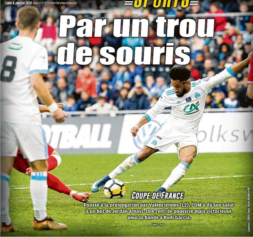 Les Olympiens ont terminé l'année 2017 par une victoire face au promu troyen lors de la 19e journée de Ligue 1 au Vélodrome (3-1) Le latéral gauche olympien a délivré l'OM en prolongation lors des 32es de finale de la coupe de France face à Valenciennes sur la pelouse du Vélodrome Cruellement en manque d'inspiration et de justesse technique dans les derniers gestes, l'OM a dû patentier jusqu'en prolongation pour prendre l'avantage face à Valenciennes cet après-midi en 32e de finale de la coupe de France. Après plus de 100 minutes de jeu, Jordan Amavi, le latéral gauche olympien, a libéré l'OM et tout le stade Vélodrome. Son premier but sous le maillot olympien. Le score final étriqué en faveur de l'escouade olympienne ne reflète pas vraiment la physionomie de la partie. Car, les Olympiens ont longtemps été tenus en échec par des Nordistes accrocheurs. Très dangereux en contre-attaque, les Valenciennois auraient même pu ouvrir le score sans un Steve Mandanda impérial dans les buts de l'OM. Avec Nangis et Mothiba, le VAFC disposait de deux atouts majeurs pour perforer une défense olympienne pas vraiment rapide. Heureusement, les deux hommes forts de l'attaque nordiste ont manqué de précision et de réalisme. Mothiba a manqué le cadre (11e), Sakai a contré Nangis (30e) en première période. Mitroglou transparent Au retour des vestiaires, l'OM a dominé. Mais le manque de réalisme faisait toujours défaut à l'escouade de Rudi Garcia. Complètement transparent alors qu'il était associé pour la première fois de la saison à Valère Germain, Kostas Mitroglou est sorti sous les sifflets du public du Vélodrome. Il a été remplacé par Florian Thauvin juste avant l'heure de jeu (59e). Mais même avec l'entrée en jeu de l'Orléanais, l'OM ne parvenait pas à faire la différence. Les partenaires de Dimitri Payet ont alors été contraints de disputer la prolongation. Amavi décisif C'est finalement après plus de 100 minutes de jeu que la formation de Rudi Garcia a trouvé le chemin des filets. Dimitri Payet décalait Clinton Njie, titulaire et maladroit cet après-midi, qui trouvait Jordan Amavi au second poteau. L'ancien Niçois contrôlait et plaçait son tir du pied droit pour tromper Perquis, le gardien du VAFC (1-0, 103e). Il a inscrit son premier but sous le maillot bleu et blanc. Un symbole fort pour celui qui est arrivé lors du mercato d'été dans la cité phocéenne. Jordan Amavi a sauvé l'OM d'un bien mauvais tour. Il permet à l'OM de se qualifier pour les 16es de finale de la coupe de France. Le club olympien connaîtra son prochain adversaire demain soir.. Auteur : Pierre-Antoine Trossero |