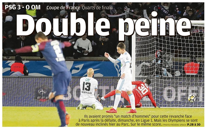 En première période, les Olympiens ont globalement tenu tête aux joueurs d'Unai Emery. Mais Angel Di Maria, opportuniste sur l'action, a profité d'un service de Draxler et de la passivité défensive de l'OM pour tromper Steve Mandanda d'un tir du pied droit, contré par Adil Rami (1-0, 45+1). Au retour des vestiaires, l'Argentin s'est offert un doublé. Sur un centre de Yuri Berchiche depuis le côté gauche, Angel Di Maria a profité de la mauvaise anticipation d'Abdennour pour devancer Sakai et tromper Steve Mandanda (2-0, 48). Edinson Cavani a fusillé le portier olympien en fin de match pour sceller la victoire parisienne (3-0, 81). L'OM sort donc par la petite porte en quarts de finale de la coupe de France. Il faudra rapidement goûter à nouveau aux joies d'un succès. Dès dimanche, c'est la réception du FC Nantes qui se profile en Ligue 1. Pierre-Antoine Trossero |