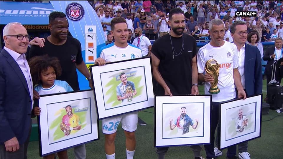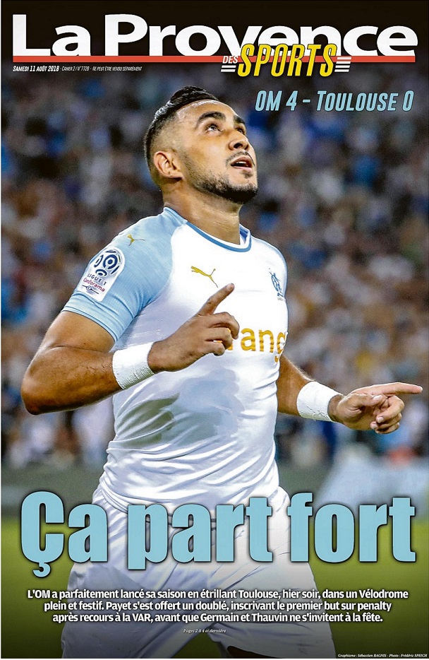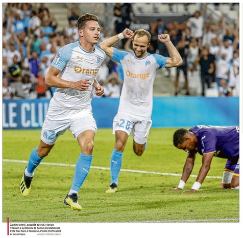 Le système de jeu proposé par les Olympiens, l'assistance vidéo à l'arbitrage, le doublé de Dimitri Payet, l'ambiance de l'Orange Vélodrome et le trophée de la Coupe du monde. Voilà ce qu'il faut retenir du premier match de la saison 2018-19. Le système de jeu 4-4-2 (avec un milieu en losange ou en ligne), 4-3-2-1, 4-3-3... Rudi Garcia a tout essayé durant les matchs de préparation au niveau du schéma de jeu. Lors des dernières rencontres amicales, la défense à trois était privilégiée mais c'est finalement en 4-2-3-1 que l'équipe olympienne a attaqué la saison avec une charnière centrale Kamara-Gustavo, un trio Njie-Payet-Ocampos en soutien de la pointe Germain et un duo Lopez-Sanson devant la défense. VAR... à jamais les premiers ! L'assistance vidéo à l'arbitrage a fait son apparition pour cette saison en Ligue 1 Conforama. On avait vu les bienfaits de la VAR lors de la Coupe du monde en Russie durant l'été. Il n'a pas fallu attendre une mi-temps pour que ce nouvel outil intervienne et vienne en aide aux arbitres... et à l'OM. Les Olympiens dominaient les débats mais ne parvenaient pas à trouver la faille dans la défense toulousaine. Sur un centre de la droite de Lucas Ocampos, Valère Germain a placé une tête au duel avec Amian. Après quelques secondes, l'arbitre a consulté l'écran de la VAR et a finalement accordé un penalty pour l'OM. Le capitaine olympien, Dimitri Payet s'en est chargé et l'a transformé avec brio. Dimitri Payet voit double La fin de saison passée avait été douloureuse pour Dimitri Payet. Blessé, il avait tenu à jouer la finale de l'UEFA Europa League mais le mal s'est aggravé et il avait dû laisser sa place en plein coeur de la première période. Cette blessure l'a également privé de Coupe du monde avec les Bleus. Il est revenu gonflé à bloc pour la préparation estivale sous les couleurs de l'OM. Face à Toulouse, le capitaine olympien a d'abord tenté de trouver la faille sur coup franc. Par deux fois, il n'a pas trouvé le cadre mais il n'a pas tremblé en fin de première période pour transformer un penalty et ouvrir le score. Il a doublé la mise sur une frappe de Bouna Sarr repoussée par le portier toulousain. Un doublé pour attaquer la saison et une ovation lors de son remplacement par Florian Thauvin, il n'y a rien de mieux pour oublier les dernières semaines... L'ambiance La ferveur n'est pas retombée à Marseille. Depuis la fin de saison dernière, elle ne fait que monter. L'été et la victoire des Bleus en Coupe du monde a prolongé la folie. Et vendredi soir, pour OM - Toulouse FC comptant pour la première journée de Ligue 1 Conforama, les supporters marseillais ont fait honneur à leur réputation. Durant l'échauffement, les chants ont résonné dans les virages. 62851 spectateurs étaient présents dans l'enceinte marseillaise. Un record pour un match d'ouverture à l'Orange Vélodrome. Bravo ! La Coupe du monde au Vél' Cela n'arrive pas tous les jours... Après le succès de l'équipe de France de football lors de la Coupe du monde en Russie, le trophée entame la tournée des stades où des Bleus évoluent. Le trophée était donc à l'Orange Vélodrome, vendredi soir contre Toulouse. Avant le coup d'envoi, Steve Mandanda, Adil Rami, Florian Thauvin et le docteur Franck Le Gall se sont vus remettre (encore une fois) par la présidente de la LFP, la Coupe du monde. Les quatre Olympiens ont été ovationnés comme il se doit par le public connaisseur de l'enceinte phocéenne. Auteur : Frédéric Rostain |