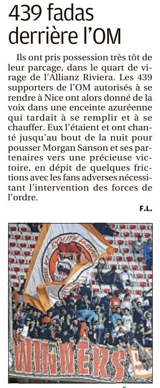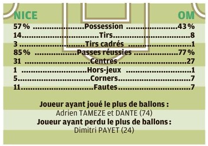 L'OM dompte l'aigle Les Olympiens l'emportent ce soir par la plus petite des marges face au rival niçois. Une victoire au courage obtenue contre l'OGC Nice, la quatrième d'affilée contre eux en championnat. La domination stérile de Nice Selon le dicton "dominer n'est pas gagné", Nice en a fait les frais. Morgan Sanson est venu stopper la machine niçoise contre le cours du jeu. 42e minute Bouna Sarr combine avec Nemanja Radonjic côté droit, avant de servir parfaitement Morgan Sanson à la réception au point de penalty. Le milieu de terrain a le temps de contrôler et tromper Benitez d'une frappe à ras de terre, imparable. Un but avant la pause qui a eu la capacité d'assommer L'OGC pourtant dans un temps fort depuis de nombreuses minutes. Steve Mandanda, décisif "El Fenomeno" est en ce moment dans le rush et ça fait plaisir. Steve Mandanda est le bon curseur pour savoir si l'OM sera en réussite ou non dans une partie. Salvateur durant le premier acte, le portier olympien a permis aux siens de rentrer à la pause avec une avance décisive. Alerté plusieurs fois par Mario Balotelli, notamment dans son face à face à la 24e minute, Steve a répondu présent et de belles manières. Mandanda retrouve de la constance et du plaisir sur le terrain et ça c'est une chose importante. Un Bouna Sarr virevoltant Avec l'absence fortuite de Hiroki Sakai, Bouna Sarr a retrouvé son couloir droit avec réussite. Prestation XXL du Français sur son flanc, tant dans l'impact, la disponibilité et l'envie, Sarr a réussi à mettre à mal le bloc niçois. Auteur de la passe décisive sur le but de Morgan Sanson, il aura touché 71 ballons avec plus de 83% de passes réussies. Solide aussi dans ses 9 duels joués, le latéral olympiens a été un des éléments-clefs de ce derby méditerranéen. Le 4-3-3 de Garcia Pour affronter l'OGC Nice le coach olympien Rudi Garcia a dû moduler son schéma de jeu habituel. Du 4-2-3-1, l'OM est passé à un 4-3-3, avec Valère Germain en pointe. Les absences de Hiroki Sakai, Florian Thauvin, Luiz Gustavo et Lucas Ocampos sont la cause de ce changement tactique opéré par le staff. Un système rarement utilisé en début de match par les Olympiens, qui ont eu du mal à se mettre dans la rencontre. Au final, le coaching de Rudi Garcia est payant, l'OM retourne à Marseille avec la victoire. Nos supporters présents 400 supporters olympiens sur à peu près 35.000 personnes présentes ce soir dans les travées de l'Allianz Riviera, et pourtant l'OM fait toujours autant de bruit. En échauffement vocal avant les deux grosses affiches à domicile à venir contre la Lazio et le PSG, les supporteurs se sont fait entendre. Le "Aux armes" entonné en milieu de seconde période aura résonné comme un seul homme. |