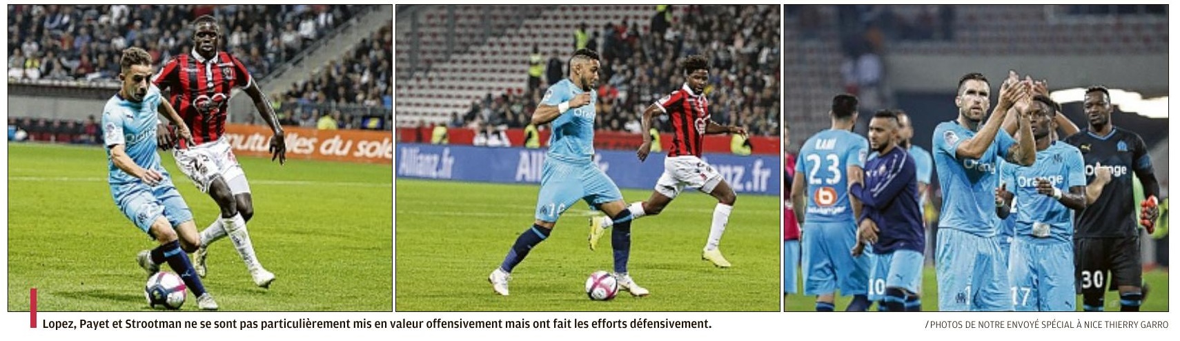 Sans briller sur le plan offensif mais en se montrant solide défensivement, l'OM s'est imposé hier soir à Nice (0-1). Un succès précieux avant le Clasico Demandez à quelques supporters de dresser une short-list de leurs Olympiens préférés. Florian Thauvin et Luiz Gustavo, deux des hommes les plus influents sur le terrain, y figureront assurément. Hiroki Sakai et Lucas Ocampos, connus pour leur abnégation et leur sens du sacrifice, peuvent aussi y apparaître sans souci. Ces quatre-là occupent une place importante au sein de l'OM de Rudi Garcia. Sans eux, le visage de son escouade n'est donc plus tout à fait le même... Le Brésilien et l'Argentin suspendus, le champion du monde touché au pied droit, le Japonais souffrant des adducteurs (lire par ailleurs), l'équipe marseillaise était donc largement remaniée hier sur la Côte d'Azur. Et c'est avec ses maigres forces en présence, un banc de touche pas franchement rassurant, et quelques faiblesses frustrantes qu'elle l'a emporté sur le plus petit des scores à l'Allianz Riviera. Un succès acquis au mental et à la force de caractère, qui fera énormément de bien pour la suite. Un réalisme à l'italienne Ce court déplacement marquait aussi les retrouvailles du camp olympien avec un certain Balotelli. Iroquois finement ciselé, dégaine reconnaissable à des kilomètres, le fantasque Italien a beaucoup marché. Mais il s'est parfois transformé en "Super Mario", comme il sait si bien le faire. ll aura d'ailleurs fallu que Steve Mandanda s'interpose par deux fois face à lui (15, 24) pour sauver les siens, avant que Bouna Sarr ne réalise une intervention de classe internationale (lire en page suivante) en pleine surface pour l'empêcher de tenter sa chance à nouveau en fin de première période. Le principal danger de l'OGCN muselé (même si Allan Saint-Maximim a, lui aussi, posé quelques problèmes à l'arrière-garde bleue), les Olympiens ont réalisé le coup parfait : un tir cadré, un but, sur leur unique occasion, conclue par Morgan Sanson. Une réalisation parfaite, juste avant la mi-temps, consécutive à un excellent une-deux entre le latéral droit franco-guinéen et Nemanja Radonjic (42). Offensivement, ce fut le seul instant plaisant de la partie pour l'OM. Le reste ne fut qu'une succession de mauvais choix, de passes mal ajustées, d'individualisme malvenu (la recrue serbe, titularisée hier, devra d'ailleurs beaucoup travailler sur ce plan-là). L'essentiel est néanmoins ailleurs : ce matin, tout le monde ne retient que les trois points, qui permettent à la bande à Payet de rester collée au podium de la Ligue 1, puisqu'elle occupe le 4e rang, à égalité de points (19) avec Montpellier. L'OL, principal rival dans la course à la qualification en Ligue des champions, est derrière. Après dix journées, voilà de quoi être en grande partie satisfait. D'autant qu'un autre signal très positif a été envoyé : pour la deuxième fois d'affilée, l'OM a gardé sa cage inviolée. On n'ira pas jusqu'à écrire qu'il s'agit d'un exploit, mais c'est à souligner, puisque les Marseillais s'étaient montrés particulièrement fébriles dans ce domaine-là depuis le début de saison. Dans la lignée de leur victoire face à Caen (2-0), à domicile voilà deux semaines, ils se sont donc rassurés derrière. Le retour de l'expérimenté Adil Rami n'y est sans doute pas étranger. Mieux, ils ont remporté leur second succès à l'extérieur en 2018-19. Pas à l'aise loin de leurs bases jusqu'à présent, ils ne s'étaient imposés qu'à Monaco (2-3) le 2 septembre. Ils ont donc récidivé, non loin de la Principauté. Une victoire glanée en mode roc d'Azur. Reste maintenant à être aussi costaud dimanche prochain, au Vélodrome, face au PSG... Auteur : Alexandre Jacquin |