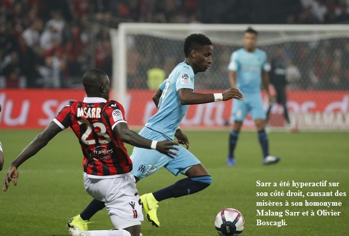Le Franco-Guinéen a été déterminant dans le succès de l'OM, offrant le but à Sanson Olivier Boscagli et Malang Sarr ont préféré jouer la carte de la prudence. D'eux-mêmes, tels des basketteurs, ils se sont lancés dans une prise à deux face à un Olympien intenable : Bouna Sarr. Le second acte de Nice-OM venait à peine de démarrer et le Franco-Guinéen continuait de causer bien des misères à la défense azuréenne par ses montées tranchantes dans le couloir droit. Les Niçois ont alors serré la garde et restreint les espaces pour mettre sous l'éteignoir l'ancien Messin. Mission réussie, pour cette fois. Car Sarr, positionné latéral pour pallier le forfait de Hiroki Sakai à la dernière minute, est sorti victorieux de la plupart de ses duels offensifs, faisant passer un frisson dans le dos des supporters du Gym ayant rempli l'Allianz Riviera en cette chaude soirée automnale. Il a annoncé la couleur d'entrée de jeu, dès les premières secondes, en se lançant dans un bon déboulé relayé par Payet et conclu par une frappe dans le ciel de la Populaire Sud. Mais le meilleur était à venir et s'est déroulé en deux temps. Le premier s'est tenu devant le but de Steve Mandanda, également impérial. Tout au bout d'un long centre venu côté opposé, il s'est jeté tel un mort de faim pour empêcher Mario Balotelli de reprendre le ballon alors que le but était ouvert (39). Sur son banc, Rudi Garcia a pu pousser un immense ouf de soulagement. Pas le temps de reprendre ses esprits ni de souffler pour le technicien olympien. La faute à ce diable de Sarr. Une poignée de secondes plus tard, il n'avait perdu ni sa flamme ni ses jambes, pour l'action décisive côté OM, celle qui lui permet de l'emporter de nouveau en terre niçoise. Et qui, sur le coup, a mis un énorme coup derrière les têtes des hommes de Patrick Vieira, dominateurs jusqu'à ce coup de poignard fatal, et qui a changé la face de ce derby du Sud. Au départ de l'action, Sarr se trouve à proximité de la ligne médiane. Bien calé, pépère. Tout à coup, il décide d'accélérer, joue un une-deux avec Nemanja Radonjic. La remise de l'onéreuse recrue serbe (12 millions d'euros) est un poil trop dans les jambes de Sarr. Mais ce dernier rattrape le coup avec un petit geste subtil qui lui ouvre grand le couloir et le place sur une voie royale. D'autant que la suite se révélera parfaite avec ce centre au cordeau pour Morgan Sanson, lequel réalisera à son tour l'enchaînement idéal pour battre Walter Benitez, juste avant la pause (42). Ce duo a failli remettre le couvert un peu plus tard, dans un copié-collé de l'action déterminante. Au débordement et au centre, encore le virevoltant Bouna Sarr ; à la conclusion toujours Sanson. Mais cette fois Youcef Atal a mis en échec les Olympiens d'un sauvetage salvateur (47). Pas grave, l'essentiel avait été assuré et les Niçois ne reviendraient jamais dans le match. Dans les petits papiers de Didier Deschamps, Sarr, qui a terminé la rencontre ailier droit, continue de parfaire son apprentissage au poste de latéral. Dans la lancée du précédent exercice où il découvrait ce nouveau rôle, presque à contrecoeur, il monte en régime et est loin d'avoir dit son dernier mot. Auteur : Fabrice Lamperti |