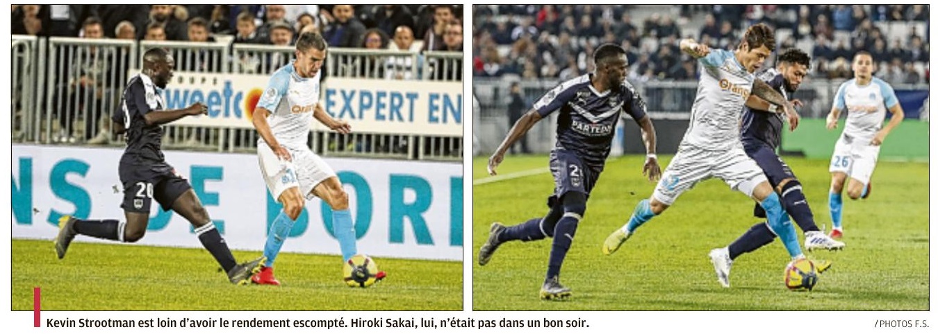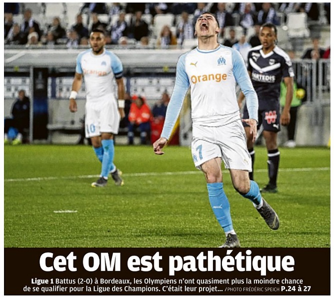 Pour une victoire à Bordeaux, on repassera. Pour la Ligue des champions aussi. Et même la Ligue Europa s'éloigne à grands pas Ce n'est encore pas pour cette saison. L'OM n'a toujours pas gagné à Bordeaux et n'a même jamais été en mesure de le faire. Une fois de plus. Mais ça, c'est finalement secondaire. Même si l'OM était resté sur cinq victoires consécutives en Gironde, l'important, pour l'heure, c'est la défaite d'hier. Et là, ce ne sont pas les quatre décennies précédentes qu'il faut déplorer et auxquelles est venu s'ajouter ce nouveau revers, c'est le nul contre Angers et surtout la sale période entre décembre et début février qui aura plombé la saison olympienne. Hier soir, la belle série entamée justement contre Bordeaux à huis clos, a été quasiment effacée et replace l'OM dans une situation préoccupante. La Ligue des champions ? Bye bye depuis le week-end dernier. Mais la Ligue Europa s'éloigne aussi. Et la prochaine suspension d'Ocampos contre Nîmes - alors qu'on a vu à quel point il a manqué hier - puis celle de Balotelli à Guingamp vont encore rendre la tâche plus difficile, car on voit que cette équipe qui a bien tourné pendant un mois avec une certaine composition est retombée dans ses errements en perdant sa stabilité. Le don de réveiller les zombies C'est vrai, l'OM a le don de réveiller les zombies. Rien de comparable entre les Girondins d'hier et ceux du huis clos, et ça, c'est bien la preuve que ces confrontations-là motivent beaucoup plus les Girondins que les Olympiens. Ils ont cadré six frappes, ce qui ne leur était jamais arrivé cette saison, De Préville a marqué son deuxième but, lui qui n'en avait plus mis un depuis septembre. D'ailleurs, les Bordelais sont entrés bien mieux dans le match et obtenu trois occasions en moins de cinq minutes. Sans les réflexes de Steve Mandanda, ça aurait été fini avant de commencer. Sans un coup de tête de Kamara dévié par Costil, l'OM serait resté acculé dans son camp. Mais en dépit d'une reprise de Strootman, c'est encore Bordeaux qui est resté le plus dangereux. D'ailleurs, c'est au coeur du schéma tactique employé en première période, avec Radonjic revenant comme arrière gauche en phase défensive, que l'OM a été puni. Le Serbe a d'abord raté un dégagement, le transformant en centre pour Briand, contré par Mandanda avant de concéder un penalty transformé par Kamano. Quel contraste avec le début de la seconde période où Radonjic allait être tout près de l'égalisation, de la tête, sur un petit retourné ou encore sur une belle frappe en demi-volée à la faveur d'un corner de Payet ! Mais faillir, c'est faillir et pas réussir. Alors, tout cela n'aura servi qu'à espérer et être de nouveau déçu. Faillite et nervosité Oui, bien avant que Pablo ne soit expulsé pour avoir bousculé Balotelli qui a mis le feu aux poudres dès son entrée, Koundé aurait dû l'être pour un tacle par derrière sur Thauvin, mais à ce moment-là, quand Balotelli a remplacé Payet, on a senti au mécontentement du capitaine olympien que la fin de saison serait difficile à vivre. Aussitôt après, une nouvelle perte de balle d'Amavi d'un côté du terrain, a abouti à un nouveau duel perdu par Kamara devant De Préville de l'autre côté. À 2-0, c'était vraiment cuit. Et la saison ? Ce sera la question principale des deux prochains matches. La faillite quasi générale, la baisse de régime de Kamara, le manque d'allant des cadres, la mauvaise humeur, la nervosité, tout cela ne laisse rien augurer de bon... Par Mario Albano,