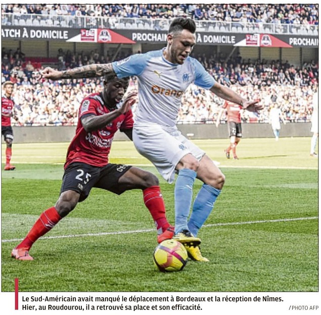 L'Argentin, qui n'avait pas joué depuis Angers, a marqué et a été tranchant. Comme souvent cette saison Absent à Bordeaux et contre Nîmes, Lucas Ocampos a retrouvé le terrain comme si de rien n'était, hier, à Guingamp. Sourire aux lèvres et grinta en bandoulière. Une habitude pour l'Argentin, qui ne sera jamais le plus grand technicien de la planète football mais qui amène un indéniable plus à cet OM trop souvent fébrile cette saison. Son entraîneur le sait, et il n'hésite pas à le rappeler à l'envi : le comportement de son numéro 5 doit être inspirant pour les autres. Jeudi, Rudi Garcia l'avait encore martelé en conférence de presse : "Depuis que je suis arrivé, Lucas montre des qualités assez exceptionnelles, pas qu'athlétiques ou mentales. C'est un garçon qui a beaucoup marqué, qui a délivré beaucoup de passes décisives. (...) On a besoin de joueurs qui montrent la voie dans l'engagement, dans le don de soi, dans le fait d'aller gagner des duels." Hier, à Guingamp, le sergent de Garcia, a, une nouvelle fois, mis ses actes en adéquation avec les paroles prononcées à son endroit. Ocampos a été l'un des meilleurs Olympiens dans les Côtes-d'Armor, et pas seulement parce qu'il a inscrit son quatrième but de la saison en championnat. Celui qui célèbre chacune de ses réalisations par un coeur avec les mains a beaucoup donné. Dans l'intensité, mais pas que, évidemment. Poison permanent Positionné à gauche de l'animation offensive du 4-2-3-1 concocté par "RG", le Sud-Américain a été un poison permanent pour l'arrière-garde bretonne. Ses dribbles ont donné quelques sueurs à Cheick Traoré qui a eu du mal à contenir ce vis-à-vis aux "trois poumons". Et il a fréquemment dézoné, venant coller la ligne à droite, ce qui a considérablement perturbé, en première période, l'EAG. C'est d'ailleurs de ce côté qu'il a délivré une offrande parfaite à Dimitri Payet (20), qui s'y est repris à deux fois pour voir sa frappe s'enfuir hors du cadre. Avec ce rendement, celui qui s'est affirmé comme un très bon pourvoyeur pour Mario Balotelli (absent hier), avec quatre de ses six passes décisives de la saison de L1, est forcément un premier choix à l'heure où Rudi Garcia couche les noms sur le papier blanc. D'autant plus que son coffre lui permet de fournir de vrais efforts défensifs, sur un côté où Jordan Amavi n'arrive toujours pas à livrer un match complet satisfaisant. Hier, sur la (belle) pelouse d'une équipe qui joue sa survie dans l'élite à chaque sortie, Ocampos a très vite donné le "la". Dans le sillage d'un Luiz Gustavo exemplaire et buteur, le natif de Quilmes a fait pétiller l'envie olympienne. La preuve de son engagement s'est illustrée par un tacle offensif rageur (9) alors que l'OM menait déjà au score depuis quelques minutes. Attention, tout n'est pas parfait et le jeune (24 ans) Olympien semble en mesure de franchir encore un palier. Pour cela, tout en s'abreuvant des louanges de son coach, il devra discipliner un jeu parfois encore "foufou" qui fait le bonheur de ses détracteurs. Dans cette veine, l'avertissement reçu hier à la 89e était sans doute évitable. Néanmoins, personne ne va véritablement chipoter. L'OM est reparti de Bretagne avec ce qu'il était venu chercher. Et Ocampos a un peu plus gonflé sa ligne de statistiques... Auteur : Arnaud Vitalis |