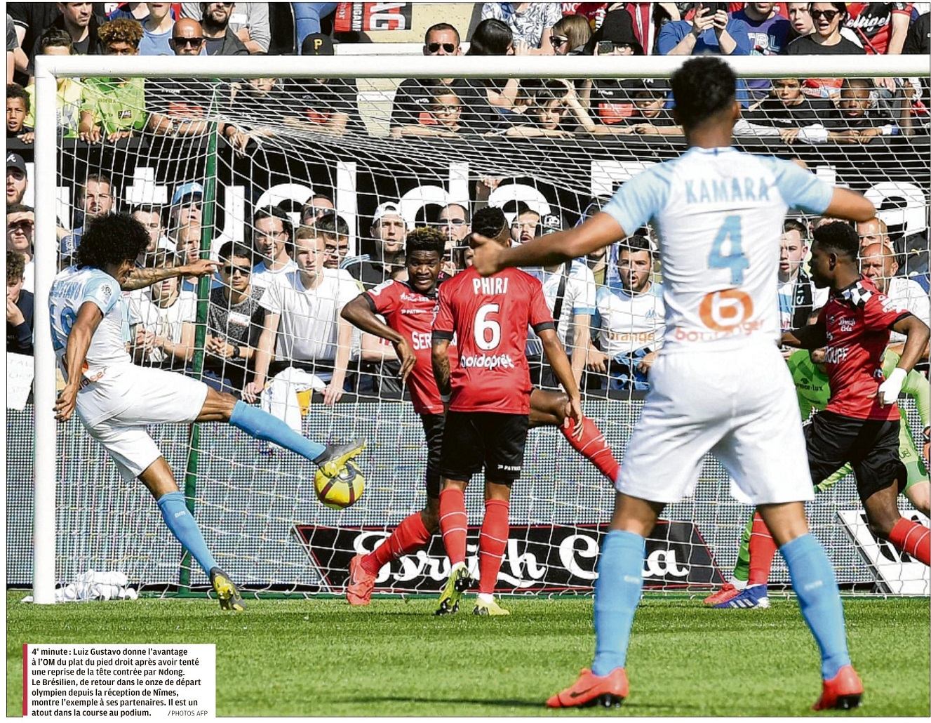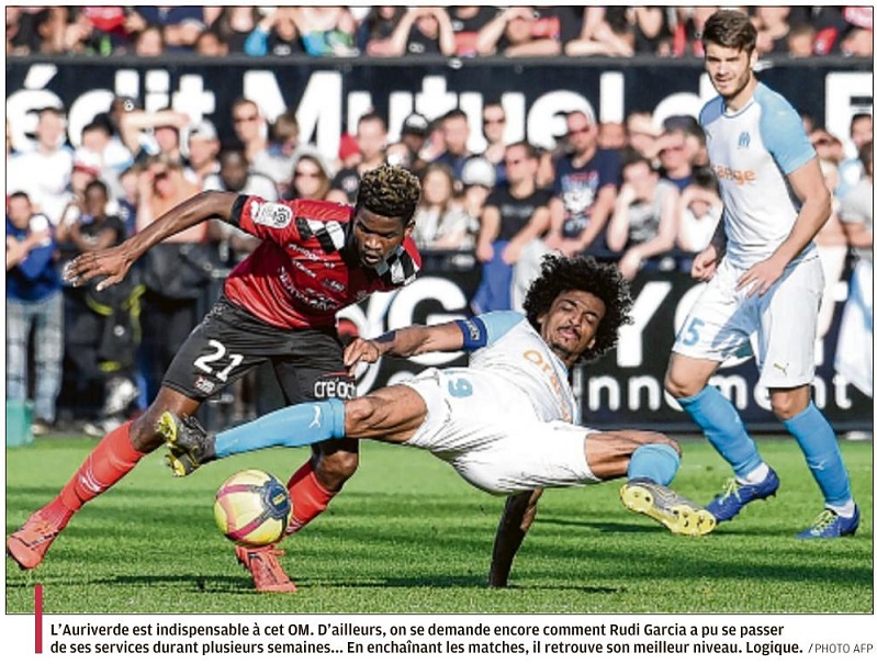 L'OM s'impose en Bretagne face à l'EAG (1-3) et débute une série de victoires pendant ce week-end de Pâques. Luiz Gustavo libère Dans une rencontre clé dans le sprint de fin de saison, l'OM s'est rapidement libéré dans un match piège. 4e minute de jeu, Luiz Gustavo titulaire pour la seconde fois consécutive, ouvre le score. Le Brésilien à la réception d'un centre de Payet, voit sa tête contrée une première fois, pour finalement trouver la faille, d'une reprise de volée rageuse pied droit. Avec ce deuxième but en deux matchs, l'ancien pensionnaire du Bayern Munich explose de joie et s'en va fêter son but, avec plus de 800 supporters de l'OM présents au stade de Roudourou. Une image de liesse générale magnifique, qui valide le retour en puissance de Luiz Gustavo dans le onze olympien. Nouveau succès Nous avons peut-être assisté au début d'une longue série de victoires pour les hommes de Rudi Garcia. Deux succès en deux matchs, un bon début pour gérer au mieux les cinq dernières échéances à venir. Luiz Gustavo premièrement (4e) et Lucas Ocampos ensuite (40e) d'une tête croisée imparable sur un caviar de Thauvin, ont permis à l'OM de s'imposer en Bretagne. Après une réduction du score de Guingamp, par l'intermédiaire de Ngbakoto (56e), les Olympiens ont douté. Marcus Thuram dans la foulée trouve la barre transversale de Steve Mandanda. Heureusement les Olympiens tiennent durant ce temps faible. Valère Germain en fin de rencontre clôt le destin de ce match. Après une ouverture en profondeur de Kevin Strootman, l'ancien monégasque enchaîne d'une reprise de volée puissante. Son ballon entre avec l'aide de la transversale (91e) et permet à l'OM de rentrer tranquillement avec les 3 points. Le 4-2-3-1 une nouvelle fois Rudi Garcia a décidé de renouveler son schéma tactique face à Guingamp cet après-midi. Comme lors du succès face à Nîmes (2-1), la dynamique offensive avec une seule pointe et Dimitri Payet en n10 fait son retour. Mario Balotelli suspendu pour ce match, Valère Germain prend sa place au sommet de l'attaque olympienne. Au milieu, Morgan Sanson entre dans le onze à côté de Luiz Gustavo. Jordan Amavi retrouve son flanc gauche ce qui permet à Hiroki Sakai de regagner le couloir droit. Rudi Garcia dans le club des 100 Rudi Garcia est devenu à l'occasion de ce succès le 5e entraineur à atteindre la barre des 100 matches sur le banc de l'OM en Ligue 1, après Jules Zvunka (141), Henri Roessler (135), Gérard Gili (121) et Didier Deschamps (114). L'ancien coach de l'AS Roma, a donné ses conseils et ses ordres tout au long de sa 100e rencontre, pour connaitre au final un anniversaire victorieux. UN soutien sans faille L'Olympique de Marseille reste une attraction lorsqu'il se déplace en Bretagne. L'En Avant Guingamp a pu accueillir les Olympiens dans un stade bien garni. Plus de 800 supporters olympiens ont fait le déplacement pour assister à cette deuxième victoire de suite. Les drapeaux et chants olympiens n'ont cessé de résonner au stade de Roudourou, pour accompagner l'OM vers ce nouveau succès important. |