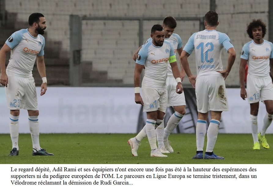 La drôle de communication d'après-match Rudi Garcia : " le VAR et l'infériorité numérique... " L'entraîneur olympien a de nouveau fustigé l'arbitrage. Pourtant, les maux olympiens sont plus profonds que ça N'allez pas lui dire qu'un sentiment de honte peut habiter l'OM après une prestation aussi lamentable... Rudi Garcia vous répondra que ce sera mieux l'an prochain, quand l'assistance vidéo sera instaurée en coupe d'Europe. C'est en tout cas ce qu'il a fait jeudi soir, en conférence de presse d'après-match. "Cette Ligue Europa a été très mauvaise, ça c'est sûr. Elle a mal démarré, elle se termine mal. Je ne peux pas non plus blâmer les joueurs qui, au bout de cinq minutes, se retrouvent en infériorité numérique. Quand il y aura le VAR, ce genre de situation n'arrivera plus", a déploré l'entraîneur olympien. Certes. Mais cela justifie-t-il tant de léthargie sur le terrain ? Dans son analyse post-fiasco, "RG" a en tout cas choisi de protéger ses hommes, comme il le fait souvent (à quelques exceptions près). "On a réussi à égaliser à dix, on a tapé le poteau quand on était à 1-1, a-t-il souligné. On a joué plus de 85 minutes en infériorité numérique. Malheureusement, je voulais voir l'équipe dans un schéma différent, mais pour la juger, il faut qu'elle joue à égalité numérique. Cela n'a pas été le cas. Encore une fois, après cet énorme fait de jeu, les joueurs ont plutôt fait ce qu'il fallait pour revenir dans le match et essayer de ne pas le perdre. Malheureusement, on a été un peu moins bien en seconde période et ils (les Chypriotes) ont mis deux jolis buts. C'est comme ça, ça ne tourne pas dans notre sens. Il faudra faire en sorte que ça change." Interrogé sur les "Garcia démission" entendus dans les tribunes, l'ex-coach au Losc a par ailleurs rétorqué ceci : "C'est triste de jouer dans un Vélodrome aussi vide. Malheureusement, on avait les virages suspendus. C'est notre histoire cette saison en Ligue Europa, on n'aura pas joué un seul match à domicile sans avoir nos supporters suspendus. Et ils sont importants, on l'a vu l'an dernier. Quand ils sont avec nous, c'est mieux. Pour le reste, je continue à donner, avec mon équipe et mon staff, le meilleur. Il n'y a pas de raison qu'on ne gagne pas les matches et qu'on n'atteigne pas les objectifs. Voilà." Jeudi soir, Rudi Garcia était donc aussi surprenant dans ses répliques que dans son coaching (Kamara à gauche alors qu'Amavi était frais et disponible sur le banc, Germain mis à l'écart tandis que l'OM a démarré sans attaquant de métier). De là à penser qu'il a fait ces choix-là pour montrer à ses dirigeants qu'il a besoin d'un avant-centre et d'un latéral au prochain mercato hivernal ? Mystère. Jacques-Henri Eyraud, lui, s'est contenté d'une intervention au micro de RMC Sport, diffuseur de la rencontre, pour livrer son sentiment. Son discours était quelque peu différent de celui de son coach. "Je suis responsable et j'analyse les situations, a-t-il confié à nos confrères. Aujourd'hui, il n'y a pas d'excuse à aller trouver. Oui, il y avait peut-être un penalty qu'on peut discuter mais tout ça ne rentre pas en ligne de compte pour moi. C'est une immense déception. Les campagnes européennes se suivent et ne se ressemblent pas." On l'avait remarqué ! |