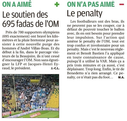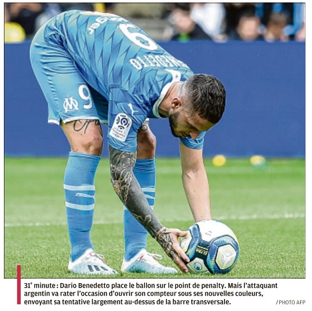 Pour ses grands débuts de titulaire, Dario Benedetto a balancé un penalty loin au-dessus de la transversale L'arbitrage vidéo, c'est bien pour éviter les contestations d'après-match et l'excuse logique de l'arbitre qui ne peut pas tout voir. Benoît Bastien, alerté par ses collègues dans le car, a donc pris le temps d'aller revoir cette action confuse où Touré a touché le ballon du bras et où, naguère, un penalty n'aurait pas été sifflé. Mais que de temps perdu, de rythme brisé... On l'a pourtant presque oublié, tant la suite de cet intermède de trois minutes à la demi-heure de jeu a été le moment clef du match. Quand l'arbitre a désigné le point de penalty, Dimitri Payet a pris le ballon, et il est allé l'offrir à Dario Benedetto, un peu comme il avait offert un but tout fait à Kostas Mitroglou, il y a dix-huit mois au Vélodrome face à Metz. Sauf que le Grec, tout maladroit qu'il était, avait marqué. Pas l'Argentin. AVB : "C'est la première et la dernière fois" "Ça m'a surpris et je le remercie pour ce geste. Il m'a offert la possibilité de donner confiance à toute l'équipe, explique Benedetto. J'ai eu l'opportunité de convertir le penalty et malheureusement je l'ai raté, ça n'a pas fonctionné cette fois-ci mais je remercie tous mes coéquipiers et on va continuer à travailler." Alors, si Steve Mandanda loue la générosité de son partenaire, ex-capitaine, son sens collectif, André Villas-Boas, au contraire, n'a pas caché son mécontentement. "J'ai dit aux gars que c'était la première et la dernière fois que cela se passe. Dim' est désigné pour tirer les penalties, il l'a fait pendant toute la préparation. C'est dur que ça se passe comme ça, même si l'intention de départ est positive. Quand je me suis tourné vers le banc, Ricardo (Carvalho, son adjoint) m'a dit que Dario allait tirer et j'étais énervé. On a raté notre chance." Raté dans les grandes largeurs ou plutôt hauteur. Dario Benedetto a pris son élan et en guise de penalty, il a tiré une pénalité. Bien au-dessus de la barre. On a dû trop lui répéter que l'important c'était les trois points, alors il s'est pris pour un "Puma". Le ballon s'est perdu dans la tribune Loire... Ce geste maladroit condamne d'autant moins l'Argentin que le plus grand avant-centre de l'OM, Josip Skoblar en a mis de tels penos, dans le ciel noir du Vélodrome ou celui de la route de Lorient en demi-finale de coupe de France. Ceci n'a pas empêché cela. Il est resté grand. "Je l'ai trouvé bien, même s'il faut attendre qu'il soit en forme. Il a récupéré d'une blessure très importante au mollet, c'est la rupture musculaire qui prend le plus de temps à soigner, tempère aussi André Villas-Boas. On a anticipé, on lui a donné 20 minutes au Vélodrome, aujourd'hui il était titulaire. Il lui manque cette fraîcheur physique pour arriver devant le but et finir les actions, mais il était bien dans ses déplacements. J'ai attendu (de le remplacer) pour voir s'il pouvait marquer." Évidemment, on ne condamne pas un attaquant sur un seul match mais ces débuts ratés ne vont pas contribuer à donner confiance en cette équipe... Par M.A. (avec J.-C.L. et B.V.) |