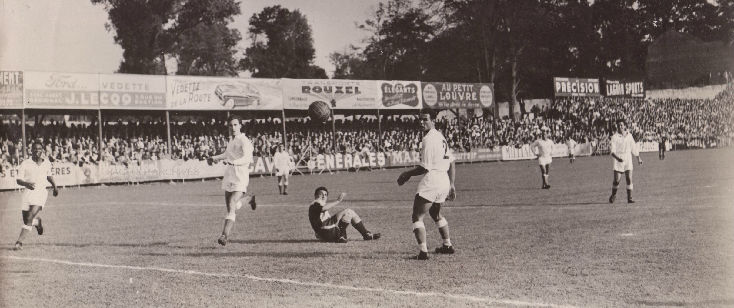Le HAVRE - À juste titre Saunier était considéré comme l'élément le plus dangereux de l'attaque normande. En chargeant Abderrahmane de marquer, Roessler fut bien inspiré. Rapide, athlétique, autoritaire, Abder dont la condition physique paraît excellente, ne lâcha pas Saunier d'une semelle et fut le grand homme du match. Avec lui, Johansson qui abattit un travail considérable, Scotti aussi brillant défenseur et organisateur avisé ; Dard dans la première mi-temps, se mirent en évidence. Mais Salem, Nekkache, qui avait pourtant à faire au redoutable Stricanne ; Aznar dont les services furent judicieux, et Caussemille dont le départ plein de décision, réalisèrent ce qu'on attendait d'eux. Alarçon, très intelligemment, manqua parfois de constance, tandis que Rossi, très courageux et plein de bonne volonté, délaissa parfois Lombardini pour attaquer Stricanne. Le goal Pchenitchny qui présente quelques ressemblances avec Ruminski, eut une tenue satisfaisante. Ruminski eut des sorties décisives et ses arrières, après un départ difficile, se reprirent bien. Devroedt se comporta en bon agent de liaison, Lombardini attendit la seconde partie du match pour étaler son savoir-faire, mais nul doute possible, il connaît bien son football. En bref, sans se montrer supérieur à sa rivale, l'équipe havraise très entreprise et chanceuse, en première mi-temps, bénéficie d'une victoire heureuse |