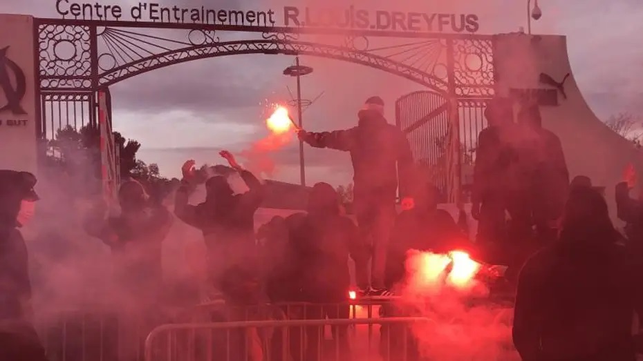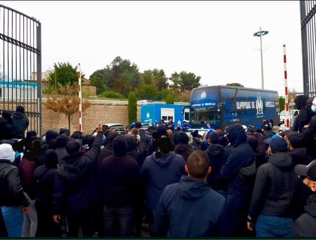 pour manifester leur colère sur le passage du bus des Olympiens, en partance pour le Vélodrome