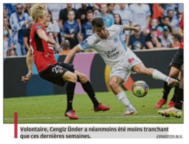 L'OM brise le granit L'OM a su trouver les moyens pour venir à bout de la résistance rennaise et s'offrir une nouvelle victoire sans bavure (2 - 0) qui lui permet de se hisser sur le podium. Bamba Dieng et Amine Harit ont encore une fois fait parler la poudre. À Monaco, le premier s'était offert un doublé et le second avait éclaboussé la soirée par son explosivité et ses passes lumineuses. Contre Rennes, le Sénégalais y est encore allé de son but, ouvrant une brèche dans la digue rennaise. Avant que le second n'assoit définitivement la victoire olympienne. " Mon équipe a été vaillante. Et même si nous avions dû marquer plus tôt, ma satisfaction est générale. " Jorge Sampaoli savoure cette nouvelle victoire, la deuxième consécutive sans que son équipe ne concède de but en championnat. Au-delà d'un succès, ce qu'il retient avant tout, " c'est que même avec les rotations, nous avons conservé notre niveau ". Niko Kovac, l'entraîneur monégasque avait reconnu que l'OM qu'il avait rencontré " est injouable. " Bruno Genesio, son homologue breton, lâche : " Je pensais que nous aurions des espaces, mais nous reculons et subissons. Nous avons manqué d'agressivité et d'ambition. " Il avait pourtant densifié son milieu, dans l'espoir de bloquer les vagues marseillaises. Un schéma qui n'a fait que retarder l'échéance. Comme c'est le cas depuis le coup d'envoi de la saison, les Phocéens ont eu la maîtrise technique. Ils ont su aussi faire preuve de patience, après un départ sur les chapeaux de roue durant lequel ils ne sont pas parvenus à trouver la faille. Ce n'est qu'après le repos que Rennes a craqué. " C'était un peu le même match qu'à Moscou " reconnaît Jorge Sampaoli. Sauf que là, ses hommes ont marqué dans le jeu. Et ont su empêcher tout sursaut rennais jusqu'au bout. Avec en plus un second but qui a scellé le sort du match à vingt minutes du coup de sifflet final. " Mon but est important, car il enterre le match ". Amine Harit savoure son bonheur d'avoir fait chavirer le Vélodrome. Tout au long de l'après-midi, l'OM est allé chercher systématiquement les ballons dans le camp adverse, a mis en place un pressing qui a fissuré le bloc rennais. Une démonstration de force dans la continuité de celle faite à Monaco et qui permet d'envisager sereinement le déplacement à Angers, mercredi. Avec en prime un fauteuil de dauphin qui sied plutôt bien aux Olympiens Auteur : Michel Garoscio |