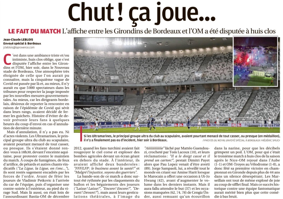 A Bordeaux, une victoire pour consolider les liens L'OM version Jorge Sampaoli a mis fin à la plus longue série d'échec de la Ligue 1. Même acquise dans des conditions particulières, la victoire phocéenne restera dans les mémoires. Quarante-quatre ans que l'OM cherchait un successeur à Marc Berdoll et Victor Zvunka. Les buteurs de la dernière victoire olympienne à Bordeaux, le 1er octobre 1977, ont enfin trouvé leur successeur, en la personne de Cengiz Ünder. Auteur du seul but de la soirée dans un stade de l'Atlantique vide, le Turc entre dans l'histoire phocéenne par la grande porte. Mais que retenir de ce succès historique ? Bordeaux trop diminué ? Fallait-il maintenir ce match ? Bordeaux, plombé par les cas de covid durant la trêve des confiseurs, a tout tenté pour obtenir le report. La LFP, qui a modifié son protocole sanitaire, s'est montré inflexible. Les Girondins ont donc dû aborder ce match avec des joueurs revenant de dix jours d'arrêt complet. Ce qui s'est ressenti dans leur jeu. Toutefois, côté Olympien, il y avait aussi des cas de Covid. A tel point que sur le banc de touche, Jorge Sampaoli a dû appeler sept joueurs de la N2 pour avoir des remplaçants. Le triomphe modeste Interroger pour savoir s'il avait conscience d'entrer dans l'histoire de l'OM avec cette victoire historique à Bordeaux, Jorge Sampaoli a eu le triomphe modeste. " Je suis content d'y participer de cette manière. J'espère que les gens de la ville sont heureux, parce que c'est un clasico et parce qu'on nous l'a fait comprendre partout où nous sommes allés. C'est important pour nous aussi d'y participer, je suis heureux pour les gens, le club, le président. Nous abordons cette deuxième place au classement en étant heureux d'avoir mis fin à cette longue période. " L'OM s'est fait peur Même s'ils ont maîtrisé le match, les Olympiens ont eu du mal à concrétiser leur supériorité dans le jeu. Il aura fallu une relance manqué de Benoît Costil, le gardien girondin, pour que Cengiz Ünder trouve la faille. Jorge Sampaoli l'a noté. " Nous nous sommes créé des occasions. Nous sommes dans la surface adverse, mais il nous manque ce tranchant pour gagner plus clairement au vu du déroulement de nos matches. ... Il faut continuer à travailler et à chercher la possibilité que le jeu se maintienne en arrivant à être plus tranchant. " Plus qu'un trophée En gagnant à Bordeaux, l'OM n'a pas ramené de trophée. Mais pour le moral, ces trois points permettent d'engranger un capital confiance énorme. Comme le souligne Mattéo Guendouzi, " pour l'histoire, pour le club, on avait à coeur de casser cette mauvaise spirale. Nous étions comme des gosses... Cela soude l'équipe ". Tourner la page Les Olympiens n'auront pas le temps de s'endormir sur leurs lauriers. Dès dimanche, un choc face à Lille les attend au Vélodrome. Face au champion en titre, qui n'a pas joué ce week-end, ils devront confirmer leur victoire ramenée de Bordeaux. En espérant que le Covid ne vienne pas perturber un peu plus leur semaine de préparation. Auteur : MICHEL GAROSCIO |