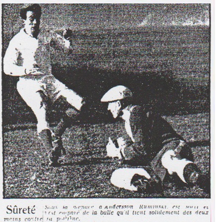 Alarcon a été lui aussi brillant ; il a lutté avec acharnement pour créer le "trou" et ravitailler son puncheur Gunnar. L'attaque olympienne, en première mi-temps, eut le tort de faire un peu de dentelle, ce qui avantageait les incisifs "balayeurs" havrais et au cours de la reprise ils s'entêtèrent à toujours vouloir franchir le mur adverse par le centre alors qu'il aurait fallu le contourner par les extrémités. Pour ces raisons, les avants "blancs" n'ont pas su profiter de leur magnifique et constante occupation territoriale. Lanfranchi comme un lion Jean Lanfranchi s'est dépensait comme un lion, actif, courageux, entêté même, il a détruit maintes opérations ennemies et a fourni bien des balles à ses camarades. Lanfranchi, qui avait peur de ne pas être à la hauteur de sa tâche à un poste étranger, a conquis défend son splendide ses galons "permanents" d'équipier premier. Salem fut farouche et impitoyable comme d'habitude. Il a bouclé de pied de mettre Vallorizek. Quant à l'attaque havraise elle sommeilla, fut presque invisible et ne se manifesta que par Saunier. |