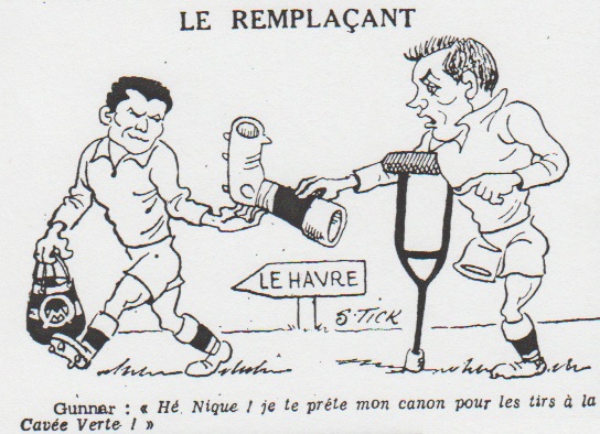 Le Havre ville martyre de la guerre, a eu aussi à souffrir des intempéries qui ont ravagé les côtes baignées par la mer du Nord et de la Manche. Le vent, qui battit vendredi soir tous les records avec 165 km-h, et la neige, dont nous avons vu les effets sur tout le parcours normal de notre voyage, n'ont pourtant pas empêché le match H.A.C. - O.M. de se jouer. La pelouse, à la Cavée Verte avait été déblayée et roulée. Et elle offrait au regard un aspect assez encourageant. Un "Titi" havrais nous lançait : "P'êt ben' qu'on va battre Marseille, parce qu'on a eu soin de déblayer le terrain". Il nous précisa que Marseille sans Andersson ni Mercurio était mieux à la portée de son H.A.C. Nous le savions aussi bien que lui, et nous nous rappelâmes que début janvier, le Stade Français privé de Colonna et de Gaulon eut beaucoup plus de chance à Marseille... |