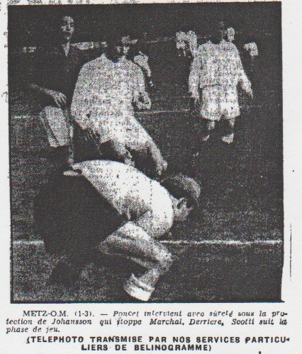L'O.M. prend l'avantage dès la 3e minute par ANDERSSON Metz se découvre, accentue sa perte Et s'incline par 3 buts à 1 (De notre envoyé spécial : Jean PEYROCHE) |