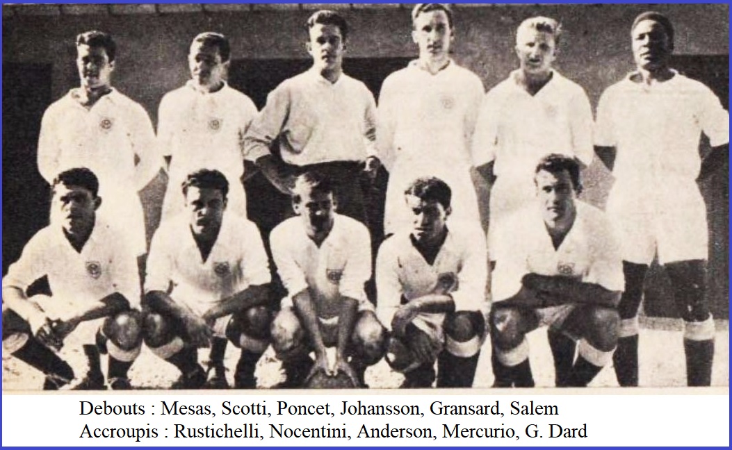 Ailiers et demis Dard à gauche a eu plusieurs déboulés si rapides qu'il laissa sur place arrières adverses et... partenaires. Son seul tort fut de ne pas carrément tenter sa chance en se rabattant au but alors que parfois il temporisa pour attendre un placement qui se faisait aussi vite chez l'adversaire que parmi les siens. Rustichelli à droite, ne nous a pas paru dans sa meilleure forme, encore qu'il est fait un match honorable. Scotti à un sang-froid et un dribble étonnant. Vingt fois on l'a vu entre plusieurs adversaires, balle au pied, arriver à passer. Par contre, quand on le passe (ce qui est rare il est vrai) son repli laisse à désirer. Mesas et tout feu, tout flamme ; il exagère même et doit s'en méfier. Il est plein de promesses, mais sa technique ne vaut pas celle de son brillant partenaire. La défense Après une éclipse, Gransart se retrouve. Il est vite, puissant, décidé, qualités essentielles de l'arrière, mais il a quelques loupés et ses dégagements sont un peu trop hasardeux. Salem reste l'acrobate qui fait la joie du public et dont les interventions médusent l'adversaire. Son duel avec Johnson fut presque constamment à son avantage, mais en une circonstance il laissa filer son rapide adversaire qui le déborda et se fut un but. Entre les deux, Johansson fut appliqué et effectif, mais bien plus demi d'attaque que de défense. Ces trois hommes sont dissemblables, c'est un fait, et je suis bien embarrassé pour dire s'ils ne complètent ou s'il se gênent. L'impression d'ensemble n'est pas celles de l'absolue sécurité. Quant à Poncet qui, malade ne voulait pas jouer, il fit de son mieux et n'est pas à nos yeux, responsable du but de Johnson. J.P. CATHALA |