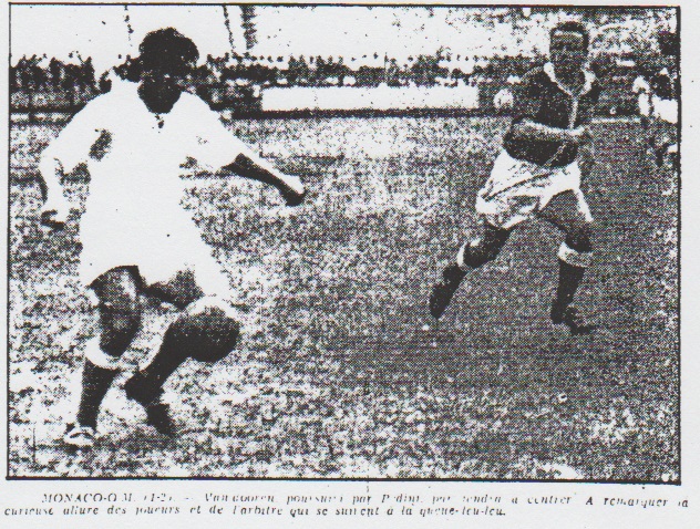 Mesas avait la rude tâche de marquer Brinck ; il s'y employa avec ses moyens. Jamais battu il fut un précieux défenseur. Vandooren faillit marquer un but en première mi-temps, mais fut malchanceux. Il s'avéra malgré tout le plus dangereux de l'attaque derrière Scotti qui fournit comme intérieur, puis comme demi-aile, une partie intelligente et efficiente. Andersson ne réussit pas à prendre en défaut le solide Gianessi qui le suivait de très près. Ben Barek fut un peu surpris par le rythme rapide de la partie et mis à son actif un but splendide. Enfin Le Gall courut beaucoup et termina moins bien ses actions qu'il ne les commença. Dans l'équipe monégasque, le gardien Boubekeur fut moyen sans plus. Élégant et vite, Zitouni est un arrière qui progresse encore. Pedina sauva l'honneur pour son camp. Ludo fut assez effacé. Giannelli se montra remarquable. Nocentini accompli une besogne inlassable. Batistella fut assez effacé, Brinek s'efforça de construire, Skiba se montra assez décevant. Saunier eut des départs dangereux et Senequier réussit quelques bons tirs |