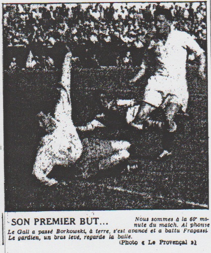 O.M. : 1 ; Strasbourg : 0 A la 60e minute, Le Gall échappe à la surveillance de Borkowski et shoote dans sa foulée. O.M. : 2 ; Strasbourg : 0 Vingt secondes après le Rennais récidive, mais l'arbitre signale hors-jeu. À la 64e minute sur centre de Palluch, Ben Barek rate de peu la conclusion sur Heading. À la 68e minute, après combinaison avec Vandooren, Ben Barek et le Gall, Andersson manque un but (le second) tout fait. Gransart sert Ben Barek dont la balle frôle le poteau. À la 76e minute, Hertrich se fait soigner sur la touche à la suite d'une collision avec Gransart, tandis qu'Angel arrête le coup franc. À la 78e minute, Le Gall descend trop et Fragassi reste maître de la situation, puis Andersson voit sa balle passer légèrement en haut du cadre et Kaelbel retire littéralement la sphère du but et Le Gall botte sur le poteau alors que Fragassi était battu. À la 84e minute Ben Barek lobe imparfaitement, le gardien visiteur, mais il y a hors-jeu, puis Skojaspal shoote à côté. À trois minutes de la fin, Wendling gêne Le Gall et c'est au tour d'Angel de sauver dans les pieds. La balle effectue encore deux ou trois voyages et c'est la fin. Georges LEOST |