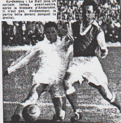 Personne n'ignore que les façons d'opérer de Kopa et d'Andersson sont totalement opposés. Le premier est un travailleur assidu dont le shoote n'a rien de sensationnel. Mais il fait jouer, dribble, feinte, court, le second, au contraire, joue "arrêté", se dépensant avec parcimonie, soucieux d'économiser ses forces, mais se jetant à corps perdu dans l'action quand il parvient à "ratisser" une balle. Un tireur fulgurant dans les 18 mètres adverses. Tout cela, on voulait le contrôler une nouvelle fois. Mais on n'en a pas eu la possibilité car le Suédois contracta une déchirure musculaire qui l'obligea à fuir la compagnie de Jonquet. Regrettons-le. Mais les 37.000 personnes eurent des instants d'émotion quand le Gall eut marqué un but qui n'était pas valable. Portée par la foule, l'O.M. jeta toutes ses forces dans la bagarre, mais avec si peu d'organisation que cette flambée s'éteignit d'elle-même après 10' d'un feu ronflant. On en était à 2 à 1. Mais, à 9, c'était impossible ! ... G.L. |