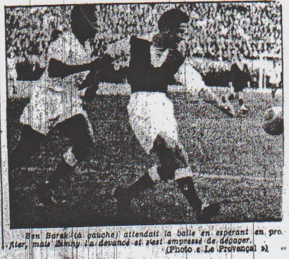 Nous savions que la rencontre O.M. - Reims, constituerait une remarquable fête du football français, mais nous pensions que les Olympiens seraient capables de tenir en échec les Champenois, sujet à des sautes d'humeur. Marseille a déçu ses plus chauds supporters et le onze de Batteux a accompli une performance pour laquelle il mérite d'être félicité. Les visiteurs ont donné une leçon brillante, artistique aux porteurs du maillot blanc ! Il est incontestable que le match Sélection Métropolitaine - Afrique du Nord a eu une grosse incidence sur le duel du boulevard Michelet. Ces sélectionneurs avaient fait fi de Raymond Kopa, il est hypotendu, avaient-ils affirmé de façon présentoirs. Pour un hypotendu, Kopa apparu en l'éclatante santé. Il fut le chef d'orchestre de la ligne offensive des Rémois. Véloce, virevoltant, intrépide, surprenant, il sema le désarroi dans le camp provençal. Il ne scora pas une seule fois, mais il fut l'organisateur de la défaite marseillaise. La ligne d'attaque du club cher à M. Germain, réussit des combinaisons agréables, aisées, alertes. Elle nous révéla un jeune qui promet, Bliard. Il avait prit la place de Glovacki. Il prouva qu'il possédait un punch étonnant. Et ses deux buts furent obtenus de façon classique, sans le moindre concours du hasard ! Hidalgo, actif, vaillant, fut également un élément dangereux. La sûreté de JONQUET En défense, nous avons pu noter la sûreté de Jonquet. Le flegmatique Robert a effacé le mauvais souvenir de jeudi dernier. Tant qu'Andersson fut valide, il l'éclipsa surtout sur les balles hautes. Mais le jeune Siatka bien charpenté, au tackling décidé, n'a pas démérité. Reims à jouer avec facilité mais sans jamais verser dans le dilettantisme. Plus rapide dans la course, il fut le premier sur la balle et s'avéra plus en souffle que son opposant. |