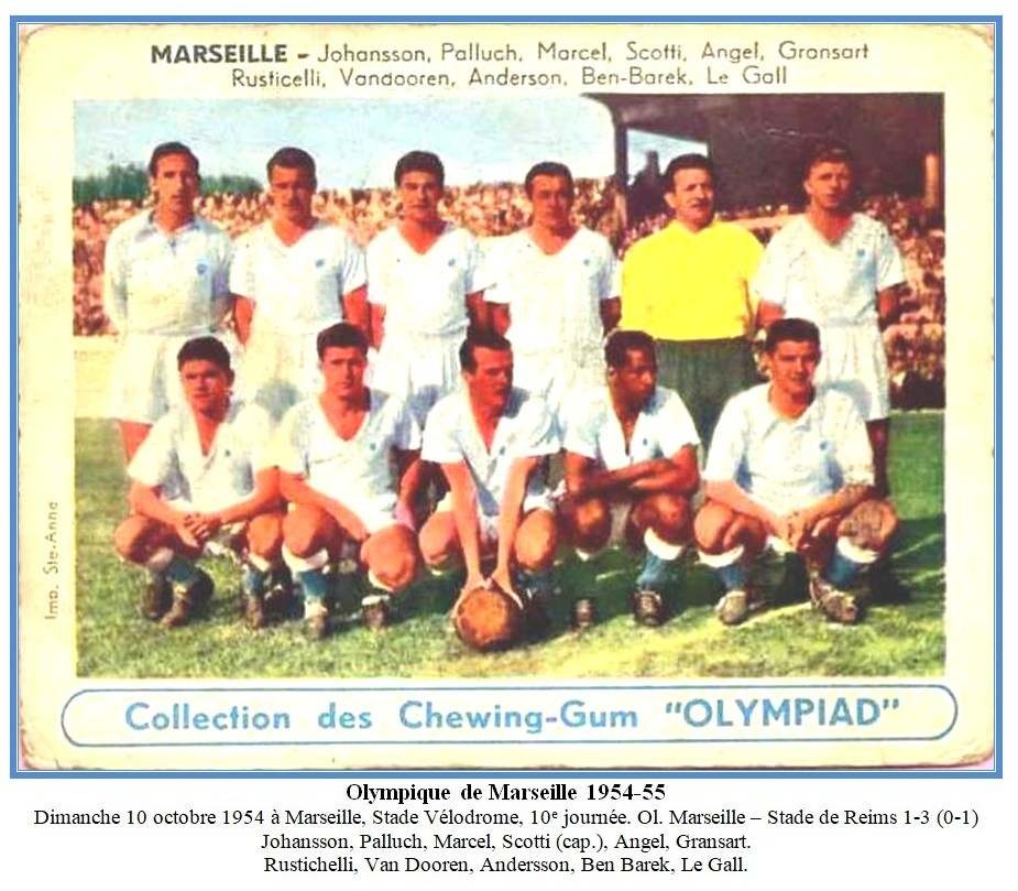Marcel et Scotti sont en retrait, Rustichelli et avant-centre. Andersson et Le Gall aux ailes, le premier à gauche. Aussi n'est-on pas surpris, à la 36me minute, d'assister à un but rémois. Bliard s'est échappé, a couru sur une distance de 30 mètres et, dans sa foulée, a placé à ras de terre une balle qu'Angel touche insuffisamment des doigts. Reims marque En seconde mi-temps, Rustichelli hésite à prendre ses responsabilités : après une rapide descente il centre... parmi des Rémois massés devant leur gardien. À la 49me minute, Hidalgo passe à Bliard dont le shoote bat encore Angel qui a plongé vainement. Reims : 2 ; Marseille : 0. Quelques instants plus tard, Le Gall fonce vers les buts, contrôle de la main et tire alors que Sinibaldi fait constater à l'arbitre l'irrégularité. Mais le referee désigne le centre du groupe. L'O.M. vient, si l'on peut dire de sauver l'honneur. Reims : 2 ; Marseille : 1. La foule réagit... les joueurs aussi. Marseille se rue à l'assaut de façon non désordonné et c'est Reims qui, à la 59me minute ferme la marque par Hidalgo. Gransart avait fait une erreur laissant Kopa filer vers Angel, trompé finalement et n'y pouvant rien. Reims : 3 ; Marseille : 1 Reims a encore de belles occasions. Marseille tente le tout pour le tout en plaçant Scotti avant-centre, mais rien ne passe plus. Et Roger Rolhion dira aux vestiaires : "Nous ne pouvions pas gagner..." Georges LEOST |