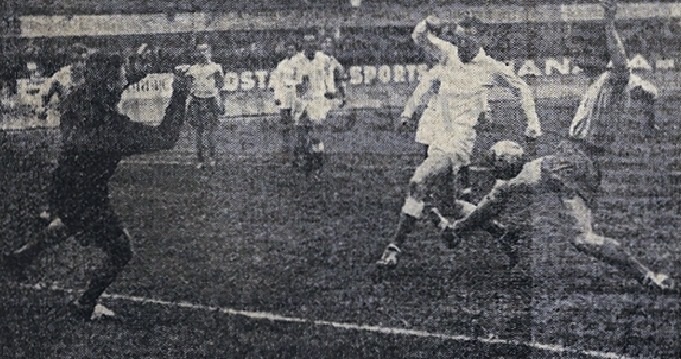 Une bonne galerie a pris place autour de la pelouse du Stade Vél, quand M. Le Men appelle les joueurs. Le haut-parleur a annoncé que Gaby Dormois avec finalement préféré faire confiance à Decker, Muro souffrant toujours des reins et qu'à l'O.M., l'aile gauche est constituée par Mercurio et Chicha, ce dernier portant le maillot frappé du N 11. Le vent est nul, un brouillard humide tombe sur les épaules des spectateurs dont un certain nombre a tenu à assister au moins à la fin de la rencontre de coupe Gambardella, opposant les juniors de l'O.M. à ceux du C.O. Berrois. Remetter alerté Après une descente, non exploitée de Rustichelli, la balle quittant les limites du champ de jeu, Scotti, à la 4me minute, botte un coup franc. Andersson, d'un petit coup de patte détourne la sphère et prend Remetter à contre-pied. Malheureusement pour les locaux, le cuir sort encore sous les clameurs désappointées du public. À la 6me minute, Gunnar surgit encore de l'aile gauche, tire, mais le portier international bloque la balle... sous son pied droit. Sochaux réagit par J. Tellechea, le demi visiteur donnant un coup de pied de réparation que Poncet annihile d'ailleurs sans mal. Cinq minutes plus tard, cependant, servi par Scotti, Andersson centre encore devant la cage vide, mais aucun joueur à la tunique blanche n'est la pour reprendre. J. Tellechea maladroit Sur corner admirablement adressé par Decker (14me minute), J. Tellechea reprend, mais nettement en dehors du cadre, puis successivement, devant Andersson et Chicha, Remetter doit sauver son camp sérieusement menacé. À la 17me minute, Labalette démarqué tente sa chance, mais le ballon rate de peu l'objectif. Andersson : trop mou Peu après, Andersson, bien placé, frappe trop mollement pour inquiéter un gardien de la classe de Remetter, puis Decker voit son tir rater la cage de Poncet. À la 22e minute, Remetter se distingue en sortant au devant de Chicha laissé sans surveillance. La tête de Bruat A la 24e minute, Labalette de l'aile, centre. Poncet sort sans intervenir. La balle parvient à Brulat dont le heading rate encore l'encadrement alors qu'Heistroffer, claqué passe à l'aile droite, Bruat devient ainsi arrière central. Cinq minutes plus tard, Salzborn vise la cage d'un heading. Le keeper marseillais se détend judicieusement et détourne en corner ; corner que Labalette shoote sans résultat. Remetter encore là ! Après un corner donné vainement par Constantino, Remetter se fait applaudir très justement en détournant du poing un shoot d'Andersson. |