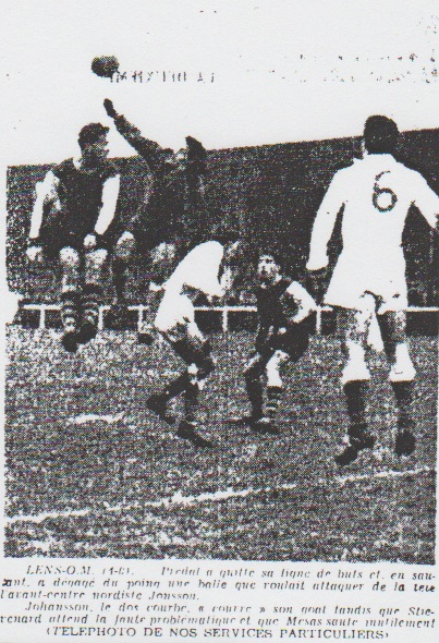 Mais il est net qu'à la faveur des contre-attaques déclenchées par la formule même de son jeu, l'O.M. aurait pu réussir en deux ou trois occasions avec des hommes plus rapides. Nous soulignons ici un défaut permanent qui, hier, à Lens, s'est avérée d'autant plus grave. C'est une explication parmi tant d'autres. En fait, l'O.M. n'a pas une équipe suffisamment assise et inspirée pour tirer son épingle du jeu dans les matches comme celui de Lens. Quatre buts A la mi-temps, le onze olympien avait donc réussi à contenir son adversaire avec une évidente volonté et surtout grâce à quatre arrêts de pure qualité du goal Predal. On avait noté quelques bons centres de Durand, un tir de Constantino sur la barre transversale, deux montées très dangereuses de Gransart et quelques incursions balle au pied, fort bien menée par Mercurio, Constantino, Marcel et Scotti. À l'arrière Johansson, Palluch et Gransart avaient réussi bien que mal, à briser l'entreprenant travail de la ligne d'avants Lensoise. Rien ne laissait supposer, avant que Bourry ne marque son but-surprise de la 11e minute, à l'effondrement aussi caractérisée par la suite. L'O.M. revint donc reprendre le jeu en changeant de tactique. Andersson retrouvait sa place au centre et Scotti restait en retrait mais ne jouait plus le même rôle. Dès lors cette portion de terrain si bien occupée en première mi-temps, allait devenir le point de départ de la cavalcade lensoise. Une balle au centre de Ziemczak arrivait à portée de Johansson qui lançait Stievenard. Le shoot à ras de terre ne laissait aucune chance à Predal qui s'était pourtant avancée (50me minute). Polak lançait alors copieusement ses hommes. Nouveau tir de Stievenard : nouveau de tirs de Jonsson. Puis sur une descente éclair de Wislienski, la défense marseillaise ne pouvait intercepter le coup de pied de centre de l'ailier nordiste Jonson était à la réception. L'impressionnant athlète reprenait la balle avec une violence inouïe. Elle frappa sous la barre pour venir mourir dans les filets (66e minute). C'était le 3me but, suivi d'incident, sans suite d'ailleurs, entre Palluch, Louis et un notre joueur Lensois. L'écart était trop grand. Le onze olympien accablé se défendit pourtant encore mais dut consentir un nouveau but à Habitzl, but réussit à la suite d'un centre de Stievenard à la 77me minute. 4 à 0 ! Il n'y avait pas là plus explication. À moins d'avoir un certain goût pour la discussion. |
